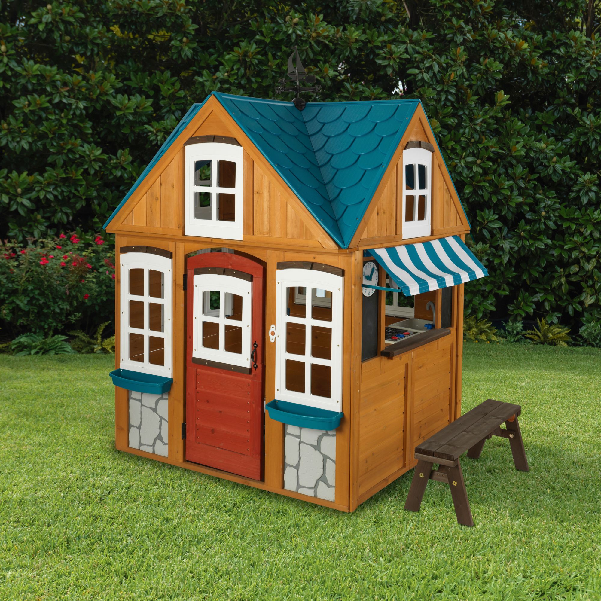 Life is easy, breezy and fun for little ones when you transform your backyard to a world of wonder with the KidKraft Seaside Cottage Playhouse. Kids are whisked away to a seaside destination when they play in this playhouse with a scalloped roof, premium bay windows, and a working weather vane. The menu of the day is easy to display on the two double-sided chalkboards as kids turn into little chefs and cook up delicious meals with the play kitchen and included accessories. With EZ Kraft Assembly, spend less time assembling and enjoy more time playing.