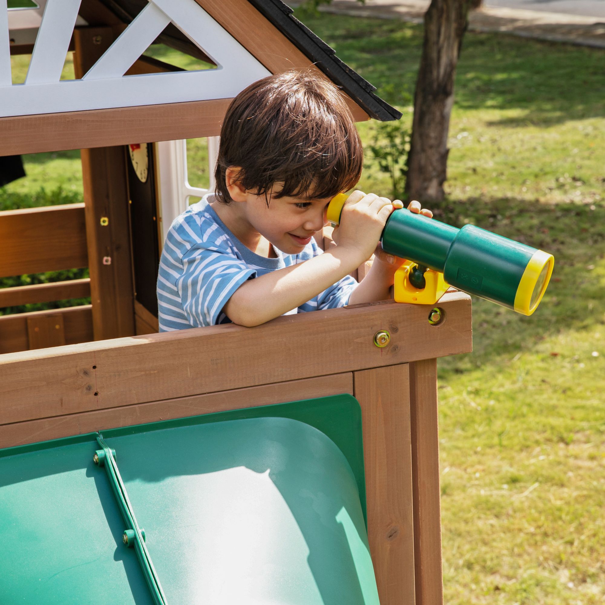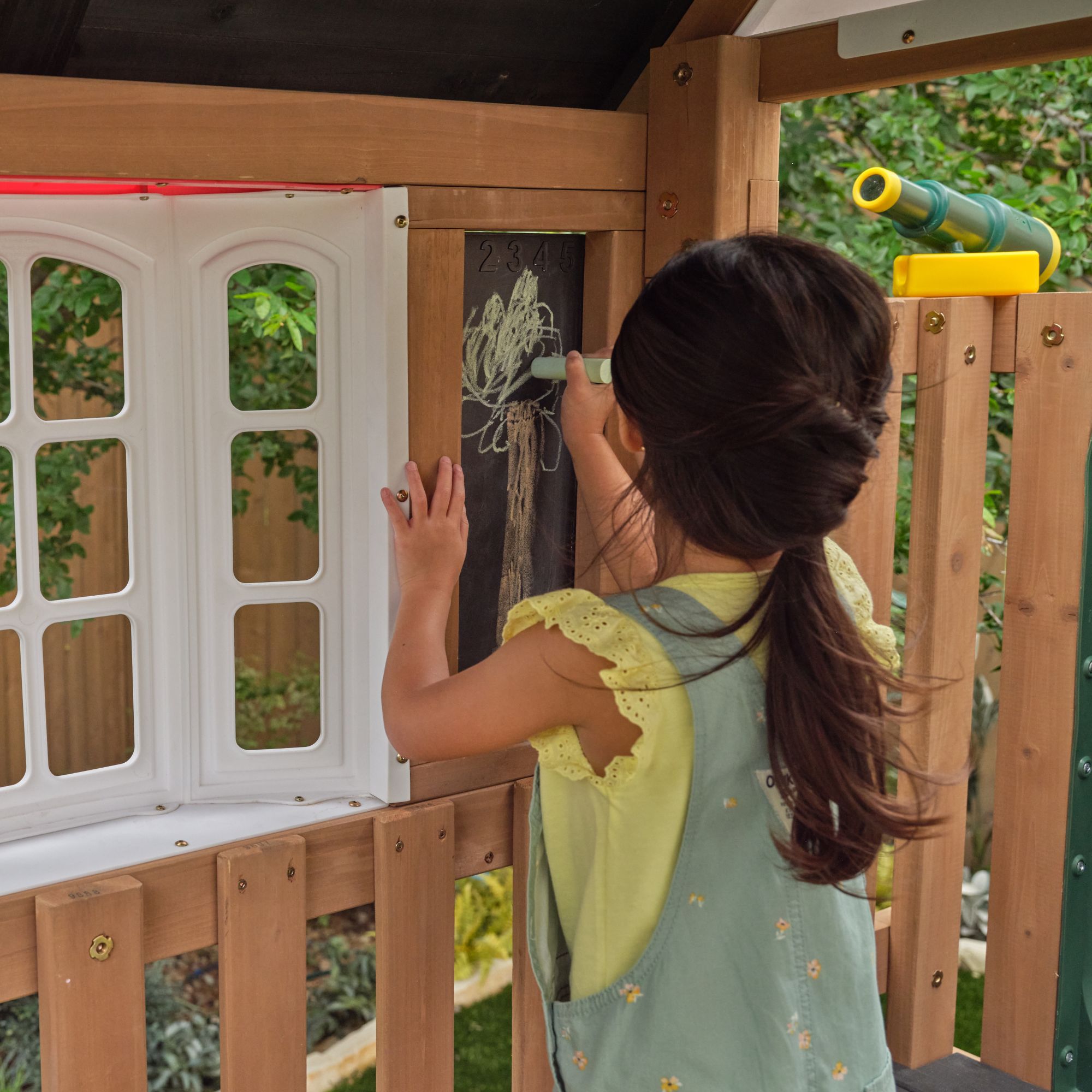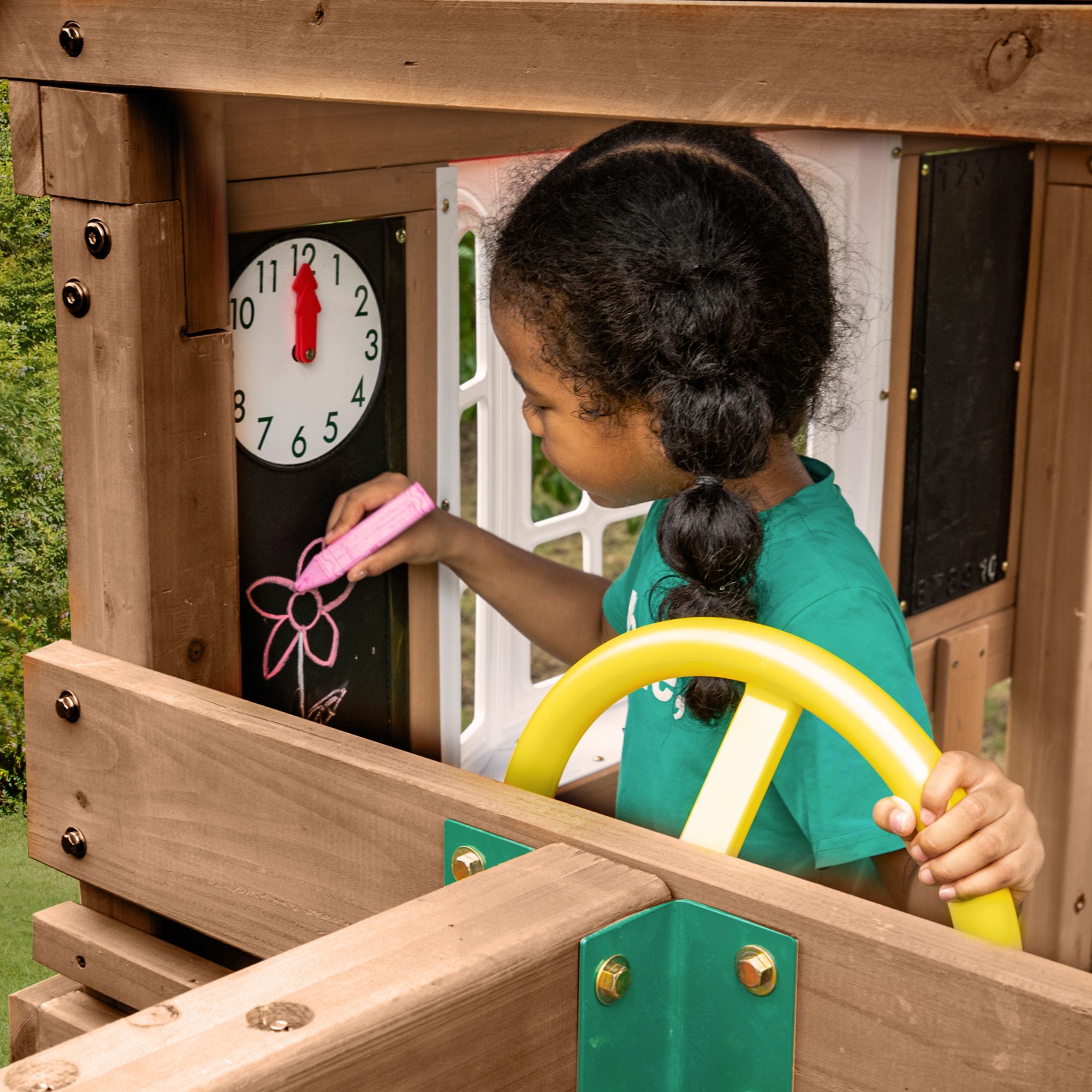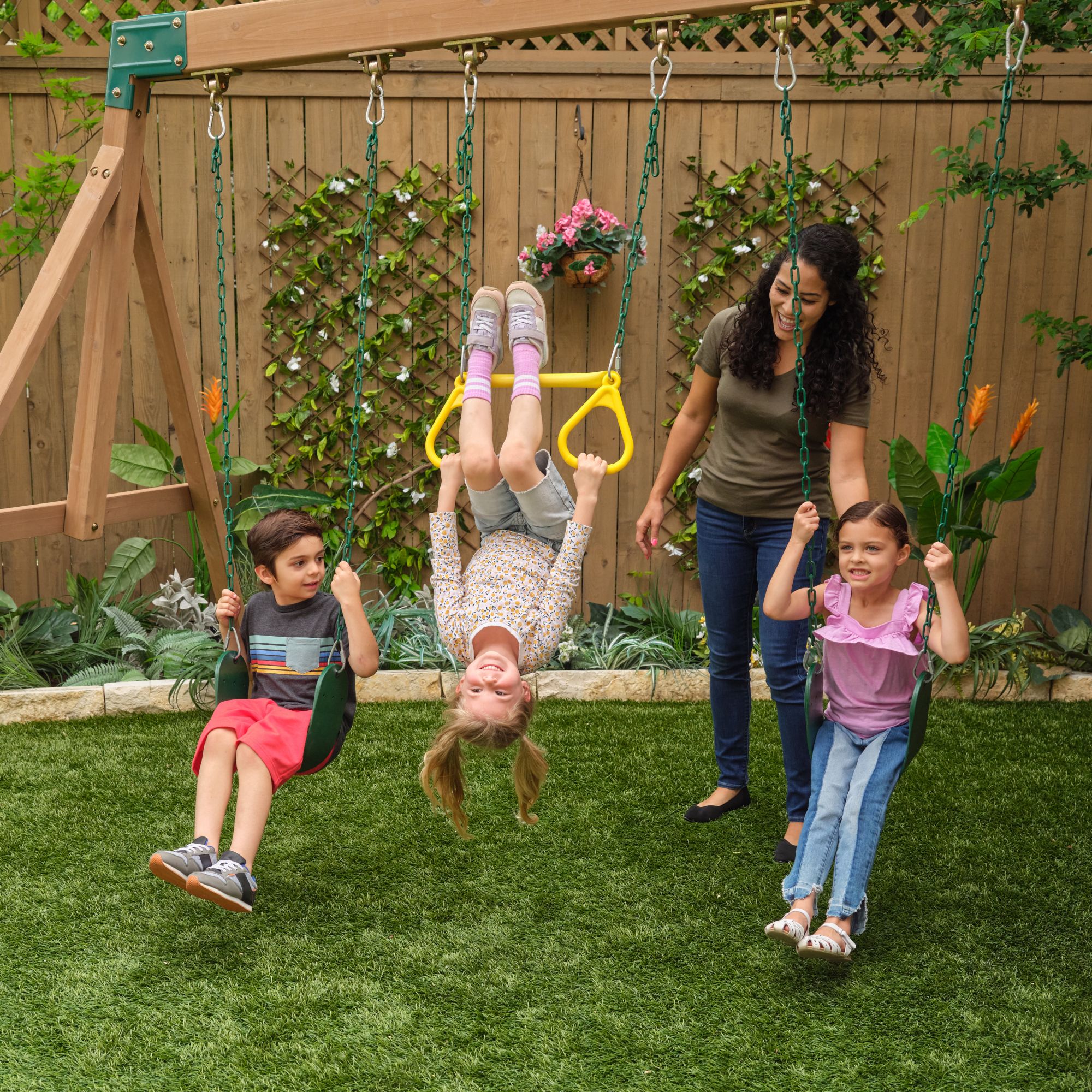 Trying to decide whether to get your kids a swing set or a playhouse? Well, with the KidKraft Timberlake Swing Set, you don't have to compromise. This wooden outdoor playset offers up all the features that both you and your kids want in the backyard. With three swinging options, three slides, rock wall and clubhouse, it'll keep children busy outside from sunup to sundown. Invite friends over even—there's plenty of room for sharing! The two wavy slides even encourage a little friendly racing competition. Ascend to the playhouse via the ladder/rock wall combo and watch imagination come alive. Pretend you're in the jungle researching a new species of monkeys or you're simply living in a remote treehouse. Then, take the twisty wave slide (or pretend it's a waterfall) to the ground and run around to the swings to take to the skies. And, since the structure is made of wood and includes a limited 5-year warranty, you know there'll be plenty of days for even more active fun.