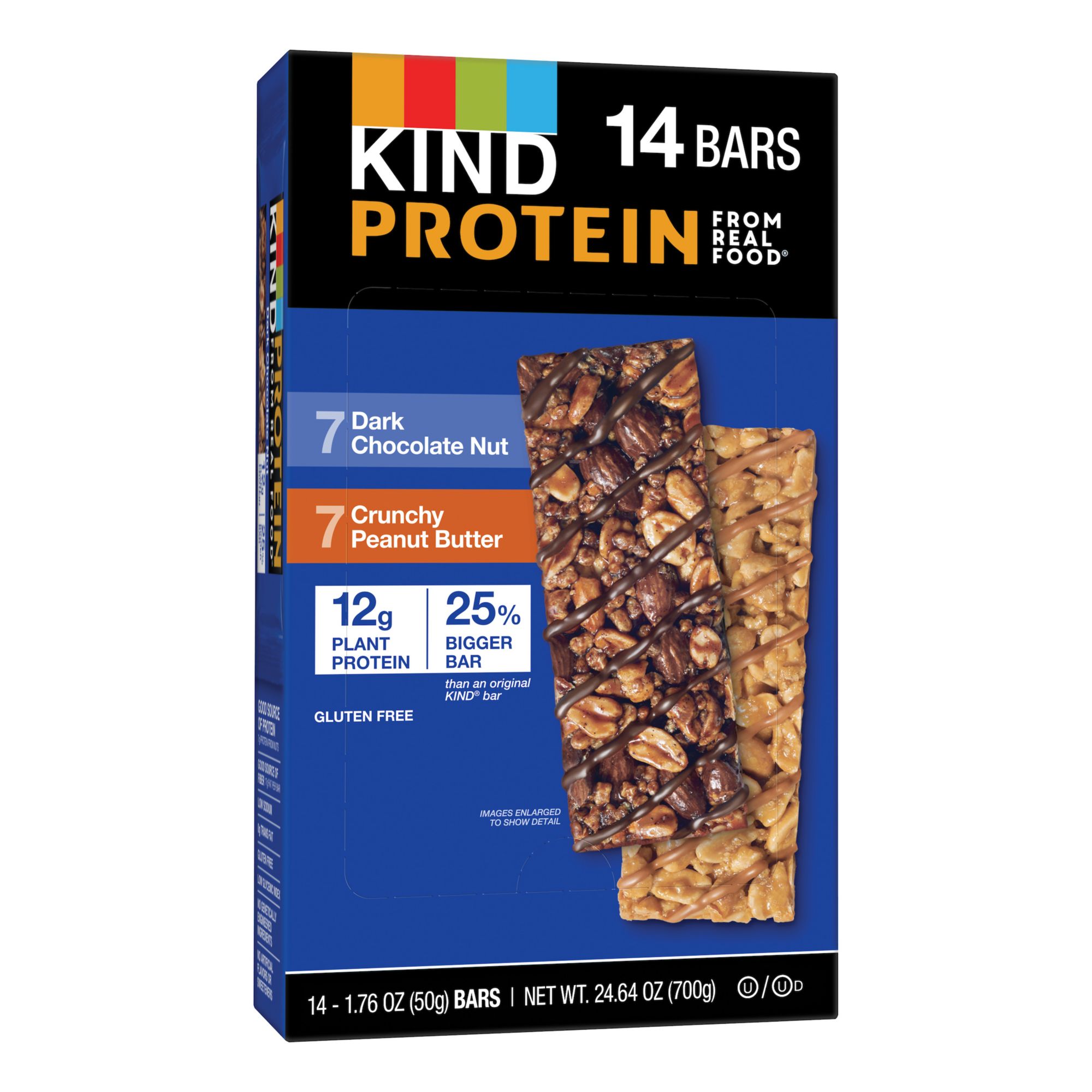 At Kind, they believe the Kindest thing they can do is create snacks with nutrient-dense ingredients such as nuts, whole grains and fruit. All of the snacks are made with real food, ingredients with integrity and are a balance of healthy and tasty. Their mission is creating a Kinder and healthier world, one act, one snack at a time. Kind Protein bars are the perfect snack to help fuel your day. Each flavor is made with 12g plant protein and premium ingredients. Kind Dark Chocolate Nut Protein Bars include a delicious blend of whole almonds, peanuts and the taste of dark chocolate. Kind Crunchy Peanut Butter Protein Bars combine peanuts and smooth peanut butter into one tasty snack. Plus, each bar is 25% bigger than an original Kind bar, so there's even more to enjoy. These bars are a good source of protein with no genetically engineered ingredients, gluten free and a low glycemic index.