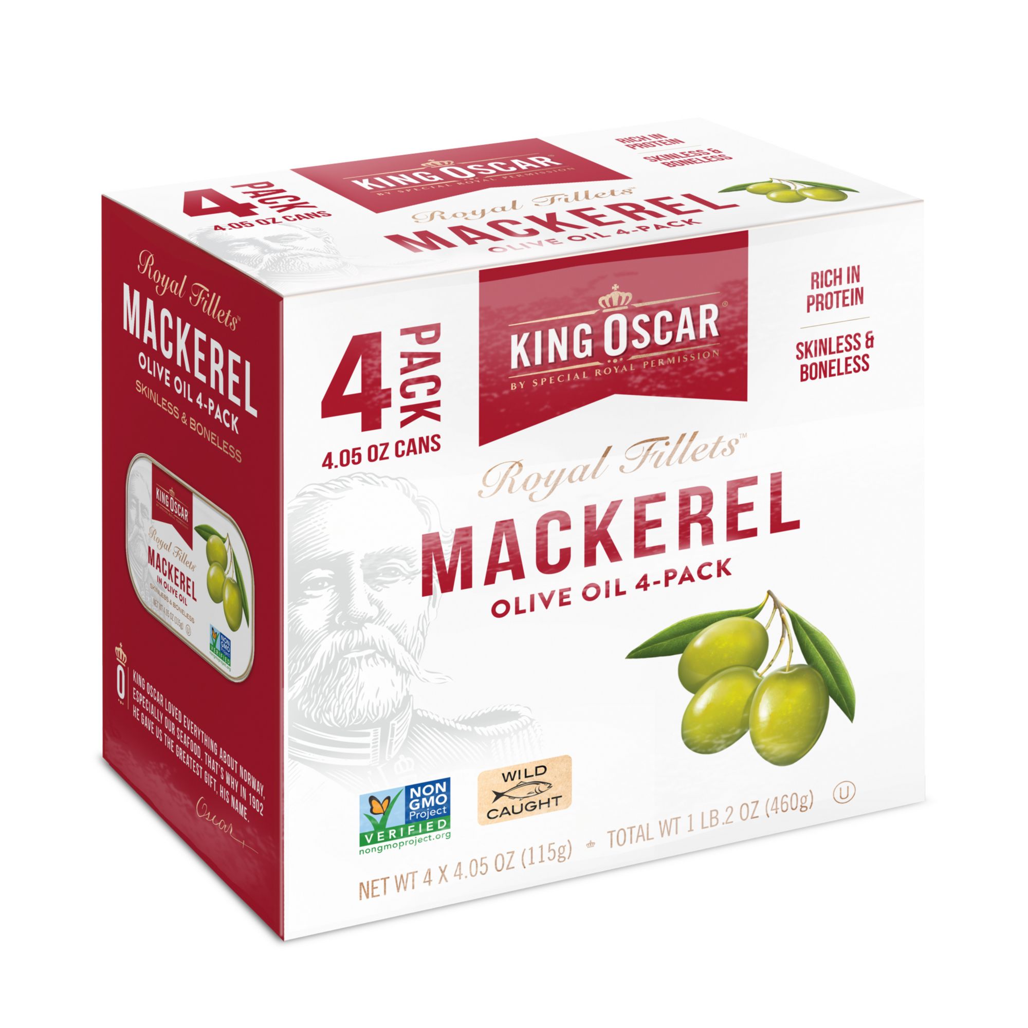 King Oscar Wild Caught Skinless & Boneless Mackerel in Olive Oil, Cans, 6 pk./4.05 oz.