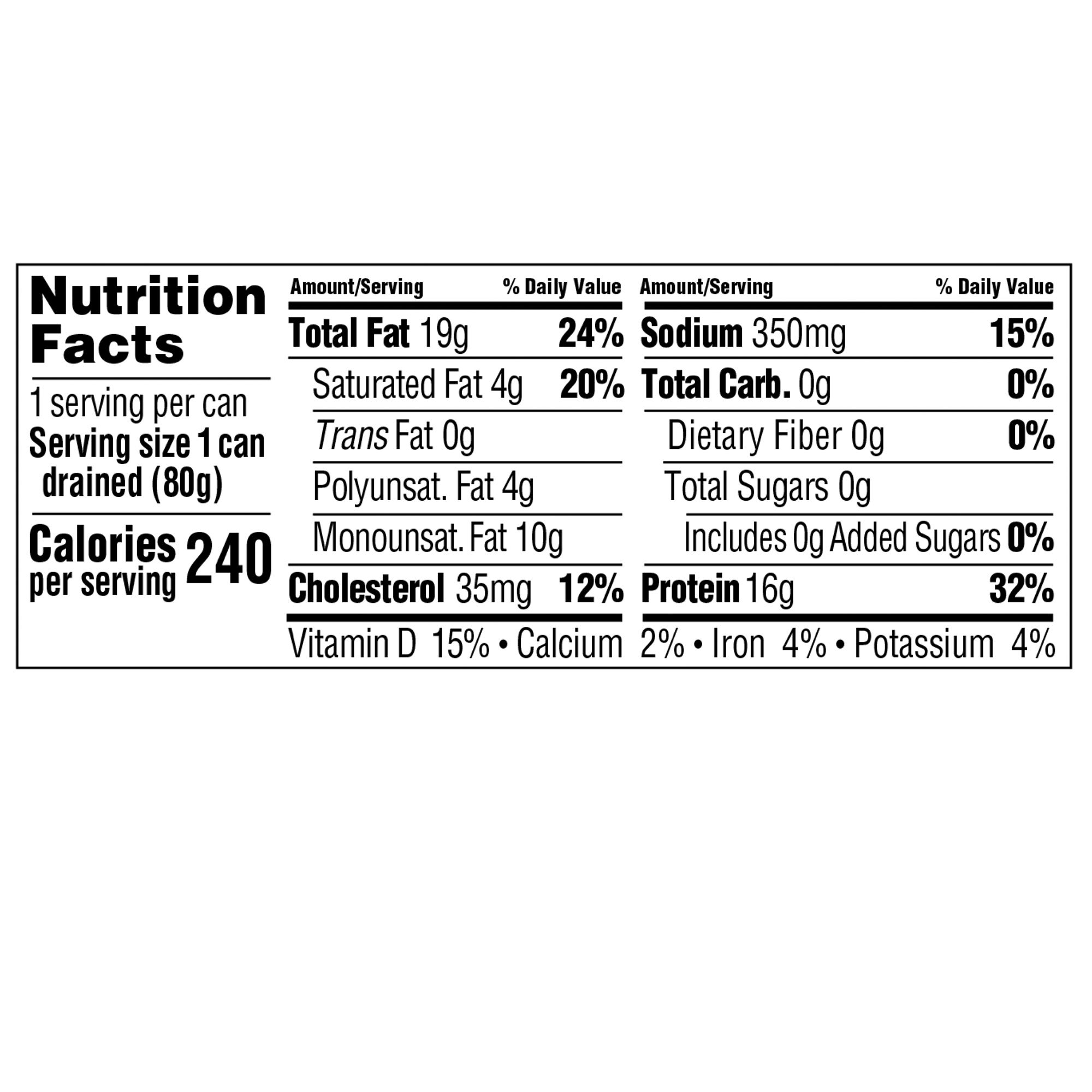 Ingredients: Skinless and Boneless North Atlantic Mackerel, Olive Oil, Salt.