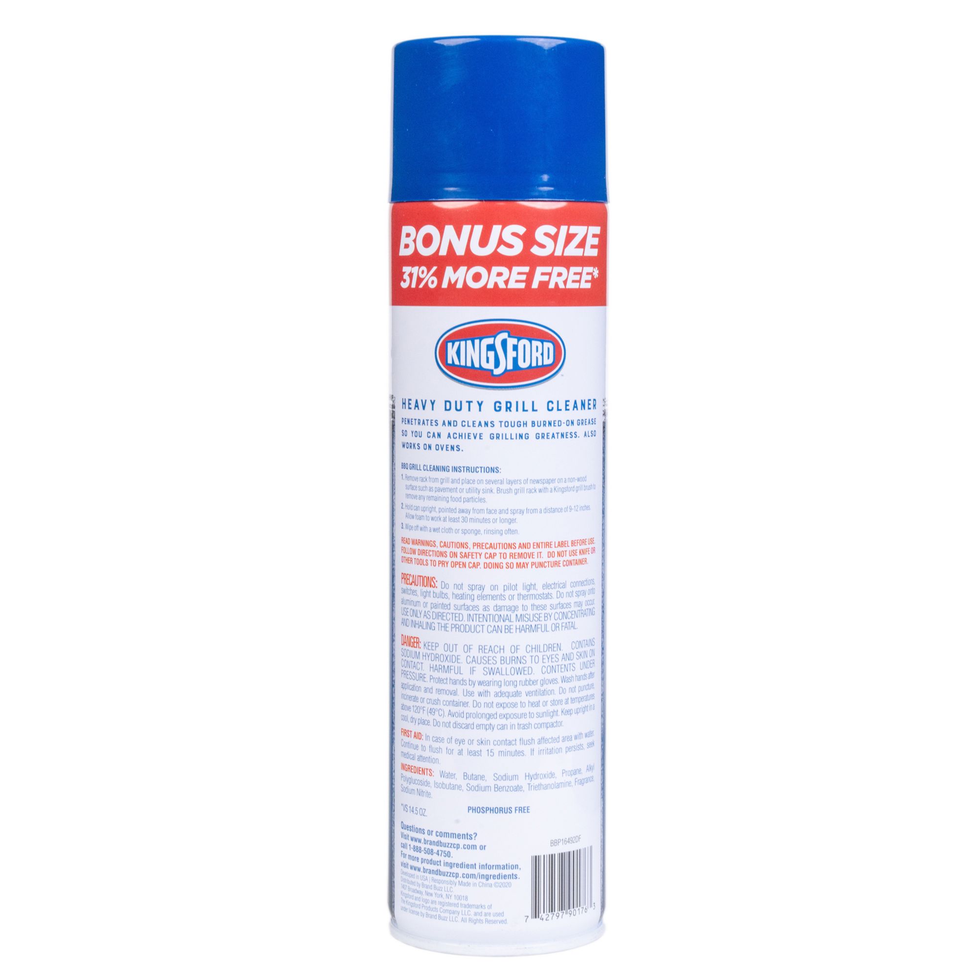 Fire up your grilling experience. Whether you’re looking to reconnect with nature through open-air cooking or are on your way to becoming an everyday master of the grill, Kingsford has the right tools for the total barbecue experience. The Kingsford grill cleaning aerosol spray is a must-have for cleaning up after a long day of grilling out, and this twin pack helps you stock up for the whole grilling season. It is a heavy-duty grill cleaner that cuts through cooked-on grease and grime easily and quickly. Simply spray the aerosol cleaner onto your cooled grill and wipe it off. Do not use it on hot grills or other hot surfaces. Plus, it works with most grill types and ovens. What’s more, you don’t need to worry if your afternoon of summertime cook-out fun goes long into the evening, and you forget to clean the grill right away. You can use Kingsford grill cleaning aerosol spray to quickly deep clean your grill to be ready for your next cookout.