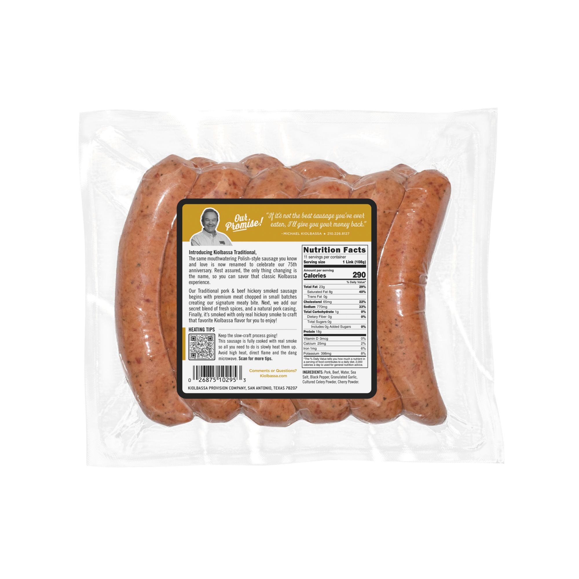 Introducing Kiolbassa traditional, the same mouthwatering polish-style sausage you know and love is now renamed to celebrate our 75th anniversary. Rest assured, the only thing changing is the name, so you can savor that classic Kiolbassa experience.