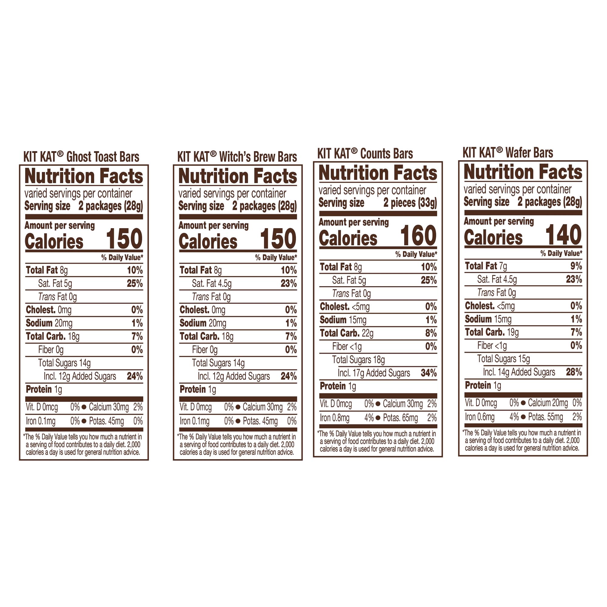 Ready for a classic everyone hopes to find in the candy dish? This snack size assortment bag of Kit Kat candies comes individually wrapped for optimal convenience, easy sharing and lasting freshness. Whether you gift them to friends, pass them out at the office party or hold onto them for snacking moments, you can expect a delicious treat in the perfect on-the-go size. This bag of assorted flavored snack size candies includes Kit Kat Witch’s Brew marshmallow flavored creme wafer candy bars, Kit Kat milk chocolate wafer counts candy, Kit Kat Ghost Toast cinnamon toast flavored creme wafer candy bars and Kit Kat milk chocolate wafer candy bars. Throw a few in your lunchbox to treat yourself to a sweet dessert or stock your home and office candy bowls with an easy snacking classic! Preparing for a specific occasion? Whether you need to fill Halloween party favors, dessert trays or keep your candy collection stocked for trunk or treat events, Kit Kat candy is the way to go. Getting ready for your next horror movie night? Add some snack size, crispy wafer candy for an extra special touch that satisfies the whole crowd. You can snack on these assorted flavored candies straight from the wrapper, chill them in the fridge for a cold treat or top your best baked goods with them to show off your culinary genius. No matter what you decide, it's bound to be a delicious success!