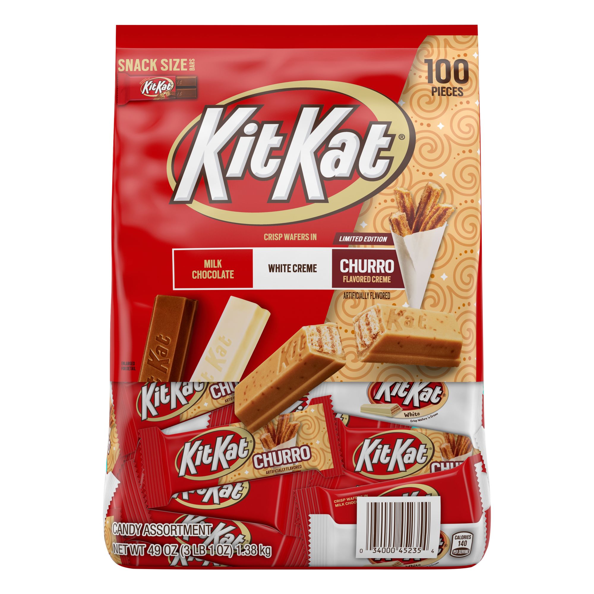 Kit Kat Churro, Milk Chocolate and White Creme Assorted Snack Size Candy Bars, 49 oz.