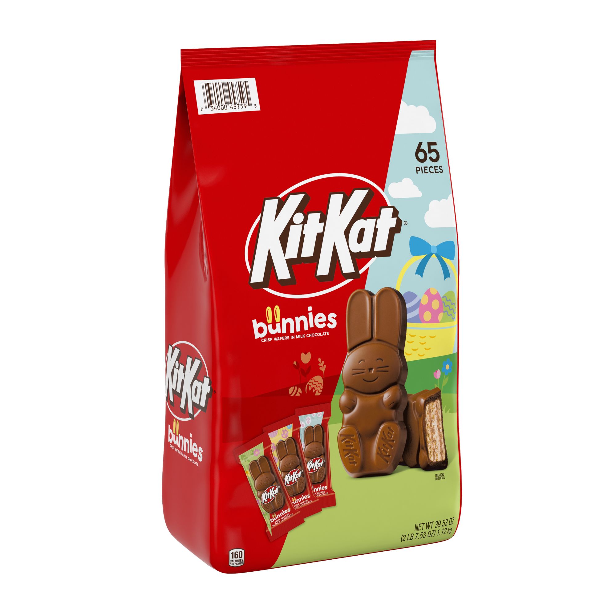 Contains one (1) 39.53-ounce, 65-piece bulk bag of Kit Kat Milk Chocolate Wafer Snack Size Bunnies Candy