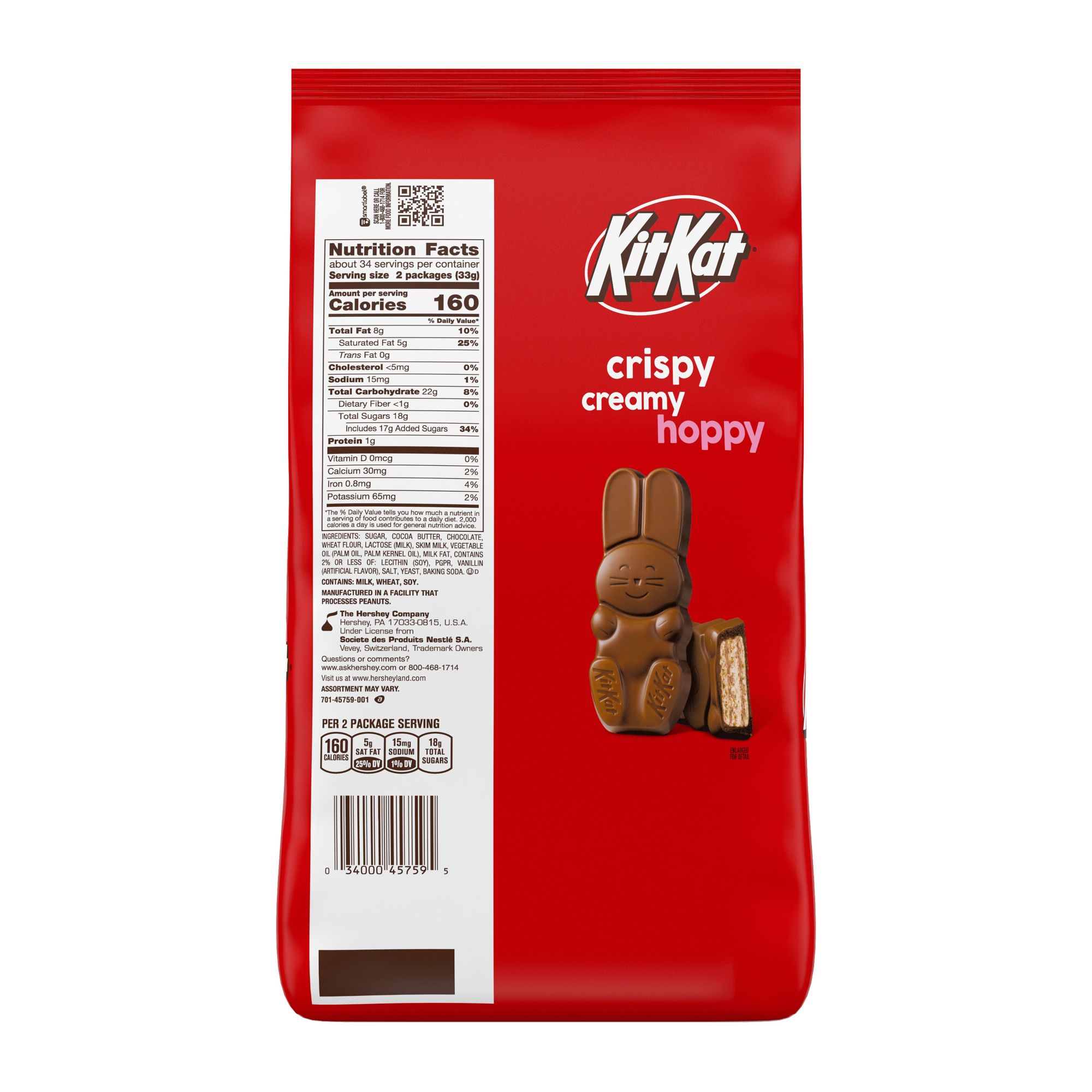 Ready for a classic everyone hopes to find in the candy dish? These snack size Kit Kat Milk Chocolate Wafer Bunnies candies are individually wrapped for optimal convenience, easy sharing and lasting freshness. Whether you gift them to friends, pass them out at the office party or hold onto them for snacking moments, you can expect a delicious treat in the perfect on-the-go size. Throw a few in your lunch box to treat yourself to a sweet dessert or stock your home and office candy bowls with an easy snacking classic, now in fun bunny shapes! Preparing for a specific occasion? Whether you need to fill Easter baskets, plastic eggs or keep your candy collection stocked, Kit Kat candy is the way to go. Getting ready for your next movie night? Add some snack size bunny shaped crispy wafers coated in creamy milk chocolate for an extra special touch that satisfies the whole crowd. You can snack on these milk chocolate bunny candies straight from the wrapper, chill them in the fridge for a cold treat or top your best baked goods with them to show off your culinary genius. No matter what you decide, it's bound to be a delicious success!
