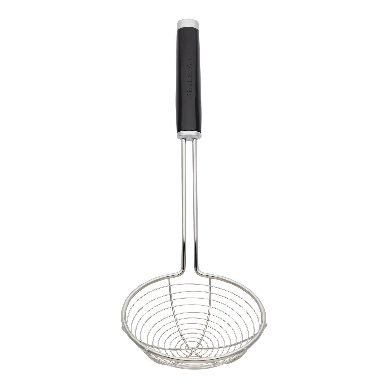 This versatile wire strainer scoops wontons and dumplings with ease. The extra-wide stainless steel basket allows liquid to quickly drain out, making it a great tool for stir-frying or using with a wok. The strainer's head is constructed of tough, rust-resistant stainless steel. The glossy ABS handle features a debossed logo, as well as an ABS satin chrome plated bolster and endcap. It’s dishwasher-safe for easy cleanup.
