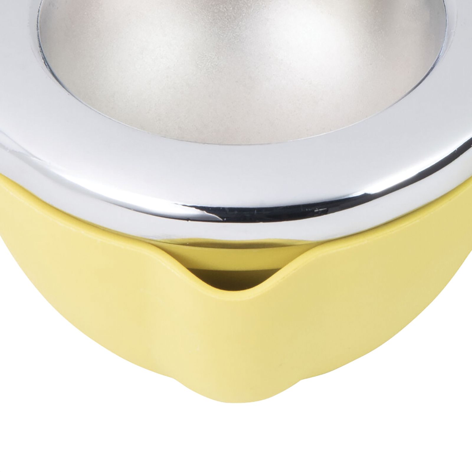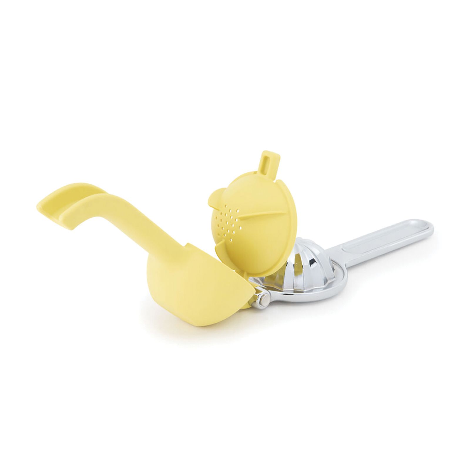Featuring a unique hopper, all the juice is contained within the citrus press and has an integrated spout for easy pouring. Specially designed, this citrus press sits flat on the countertop for added leverage, allowing you easily squeeze the most juice out of your lemon or lime. Inside the hopper is a built-in strainer that will catch unwanted pulp and seeds, keeping your juice clean and fresh