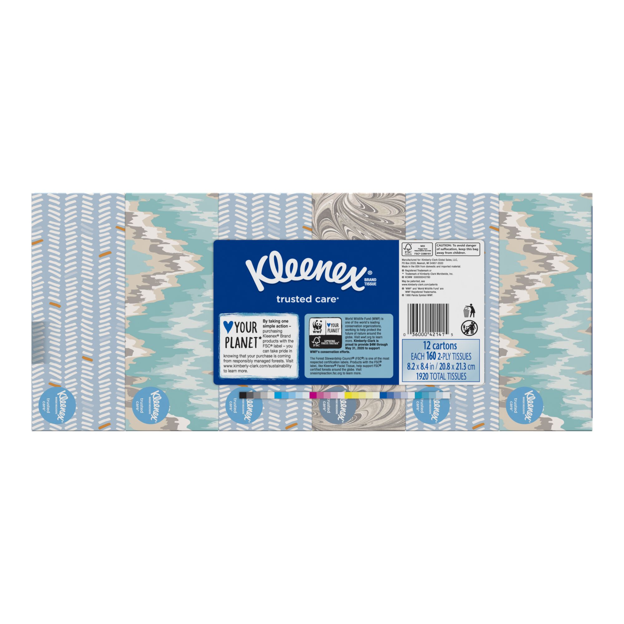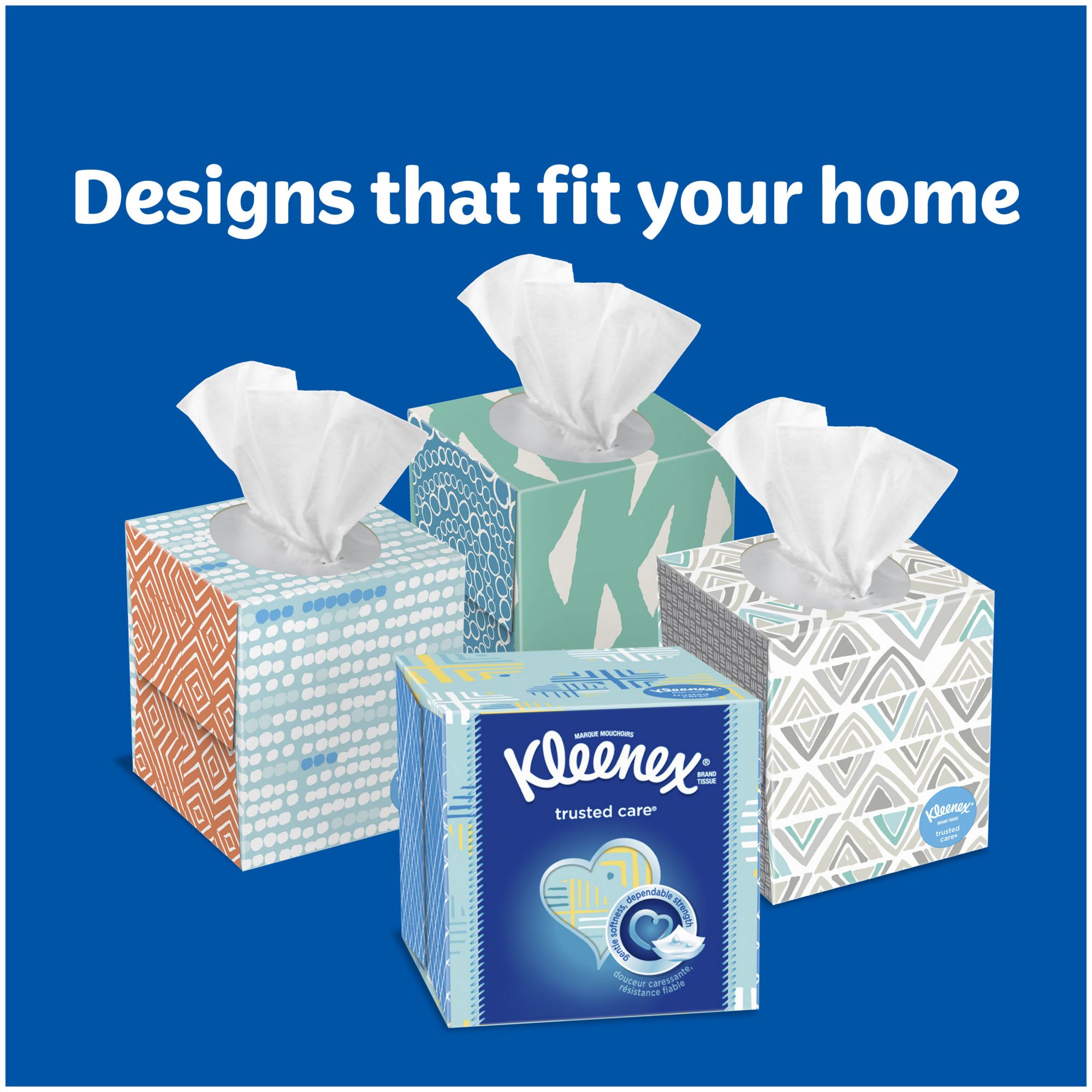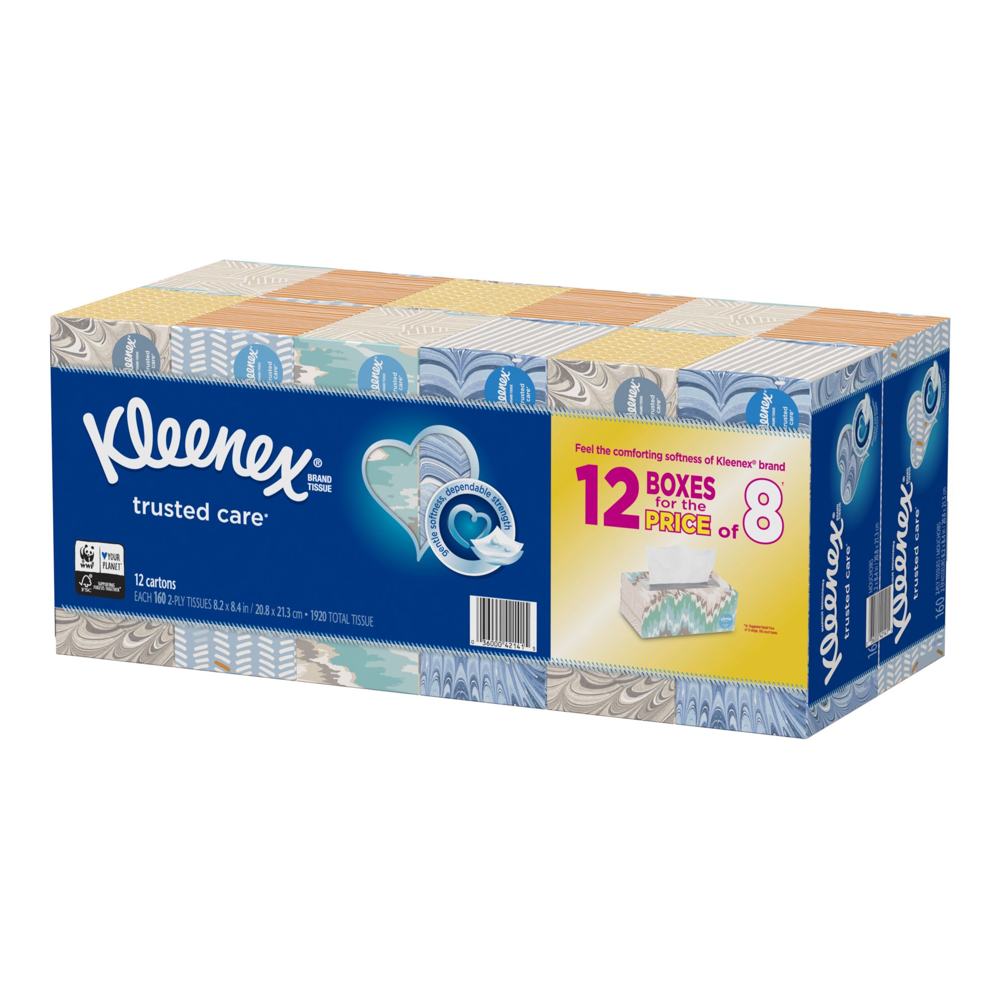 One soft tissue is all it takes to show you care. Reach for gentle Kleenex Trusted Care Tissues for a friend, a stranger or yourself. Durable 2-ply tissues have a combination of softness, strength and absorbency that locks in moisture. Essential Kleenex facial tissues are perfect for makeup smudges, sniffles and sneezes, children’s messy faces and more. Just use and toss. Buy tissues in bulk and save while keeping tissues on hand for family, company and yourself during cold and flu season, allergy season, back-to-school and holidays. Place a pack in the living room, kitchen, bathrooms, bedrooms and office.