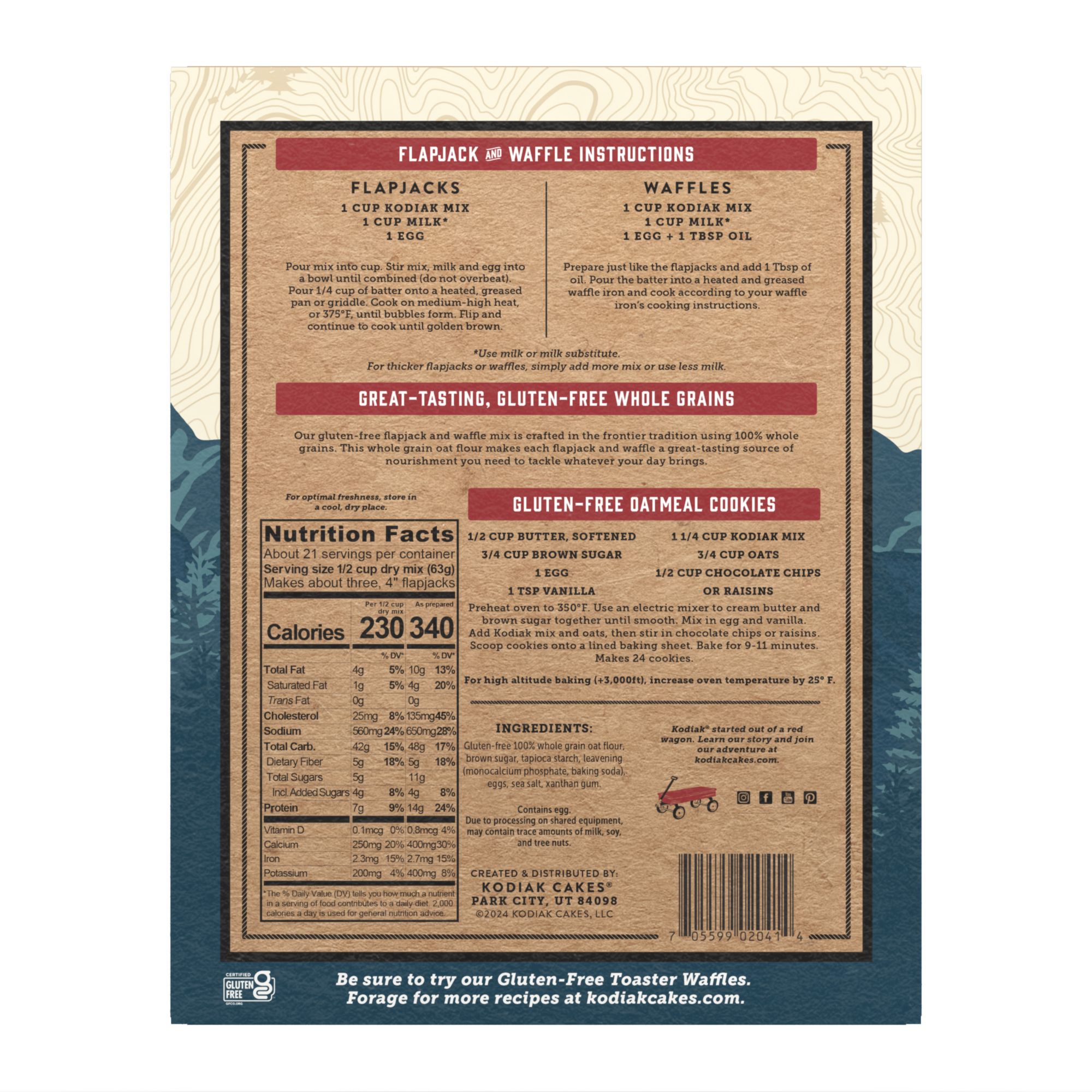 Includes gluten free flapjack and waffle mix, 48 oz.