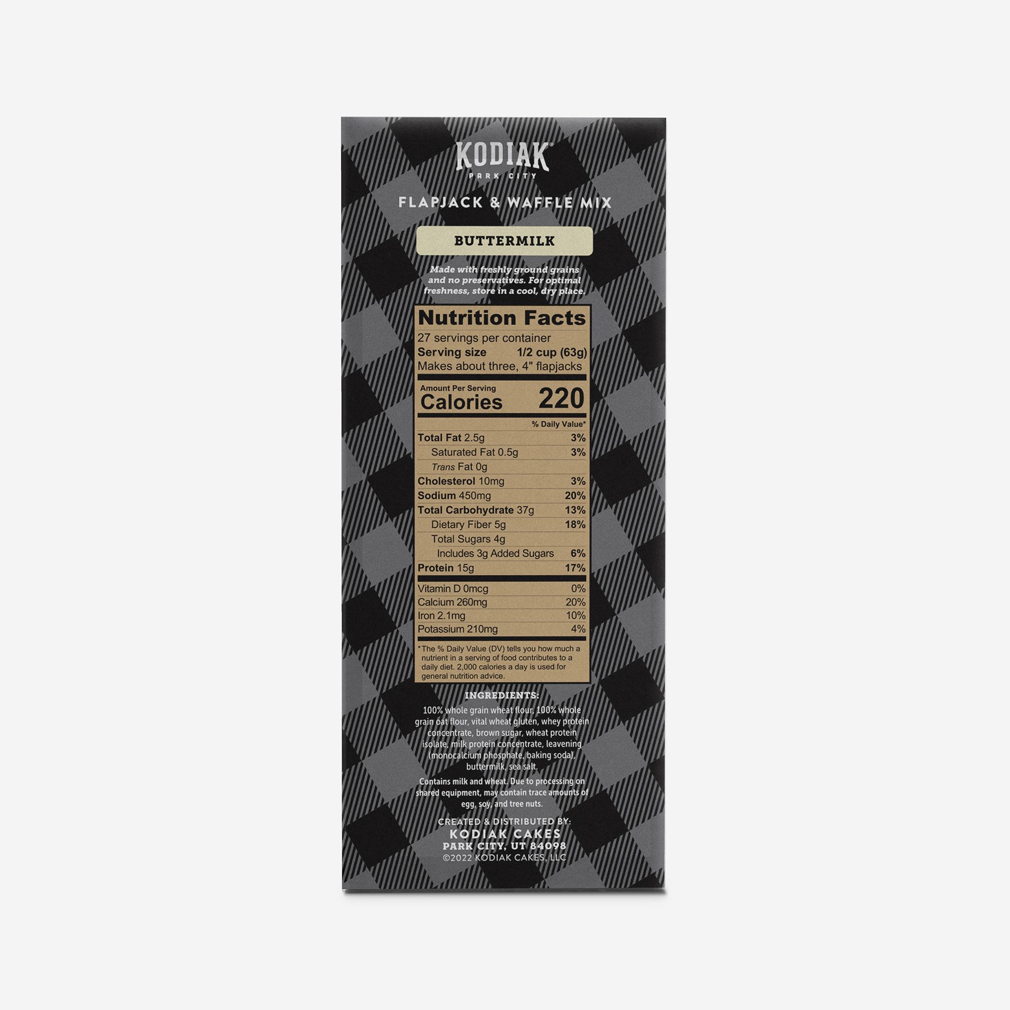 Kodiak Power Cakes Buttermilk Mix helps make perfect breakfast while pleasing your taste buds and nourishes your health. Made from non-GMO ingredients, it contains no artificial preservatives.