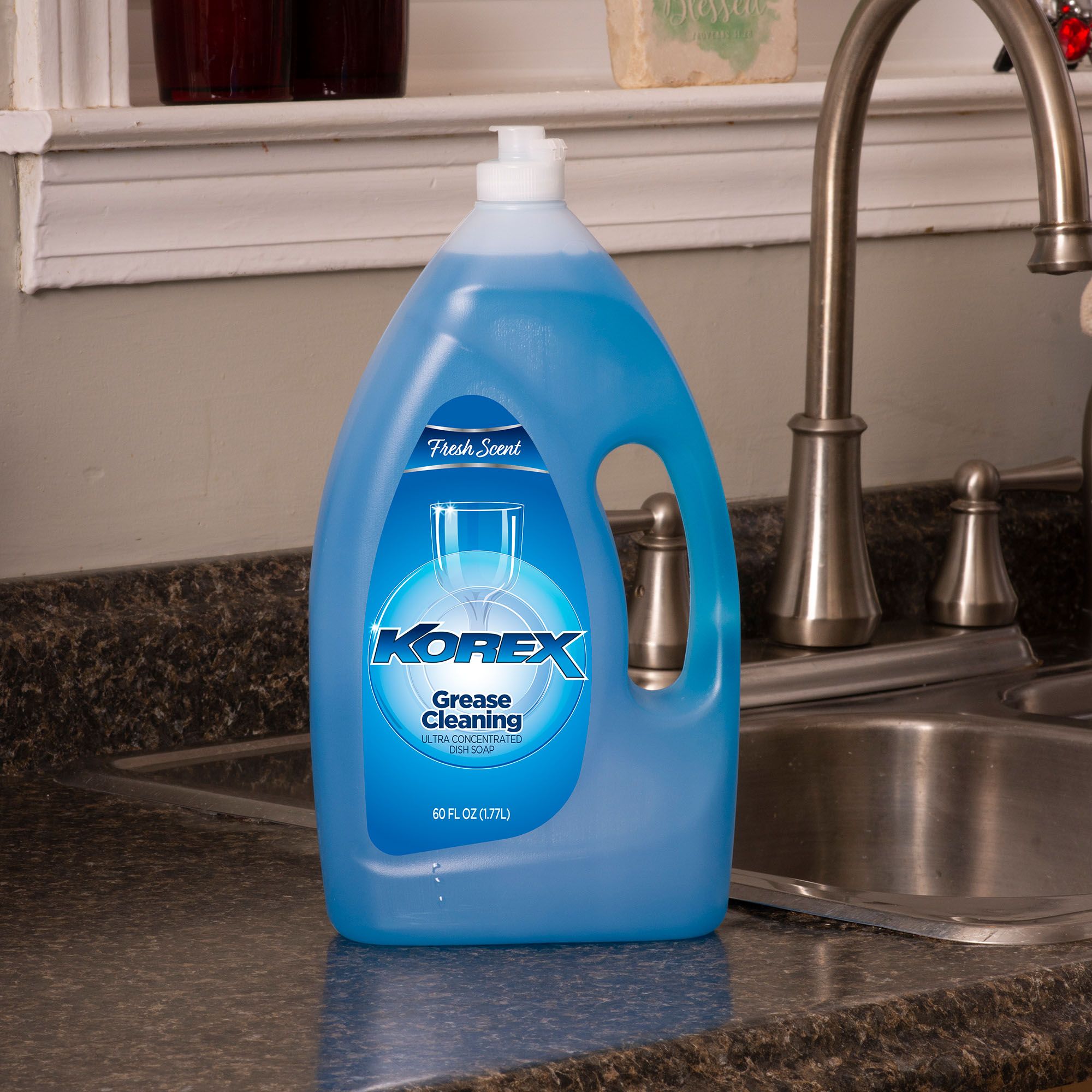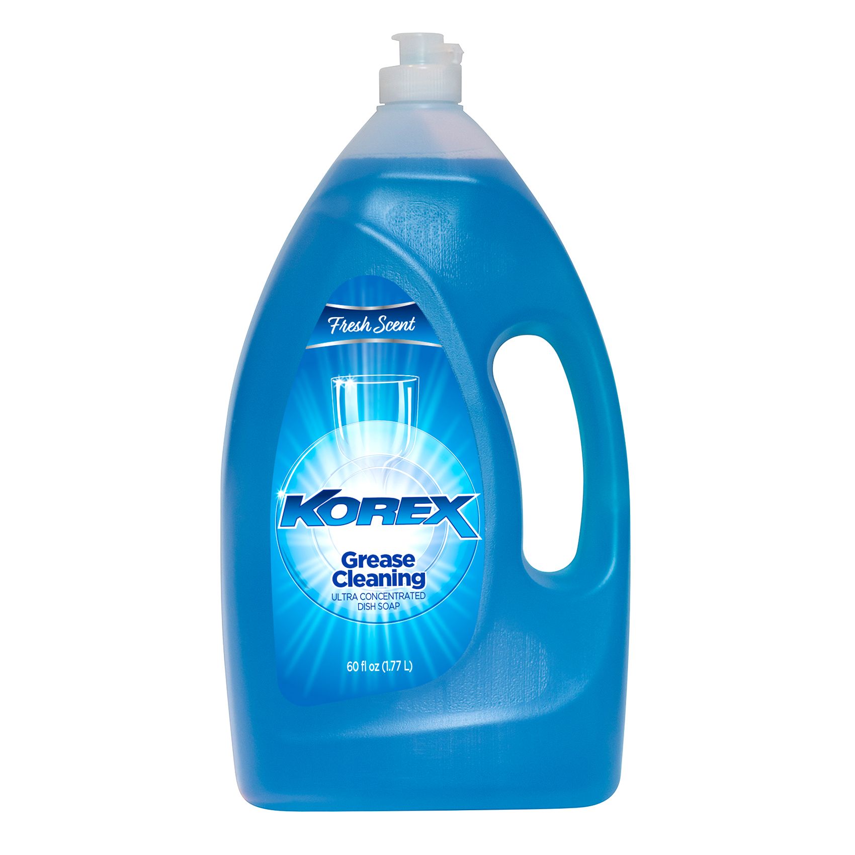 This Korex fresh scent dish soap removes stains and leaves your dishes with a clean refreshing look every time. This product includes a 60 oz. bottle of Korex fresh scent dish soap.