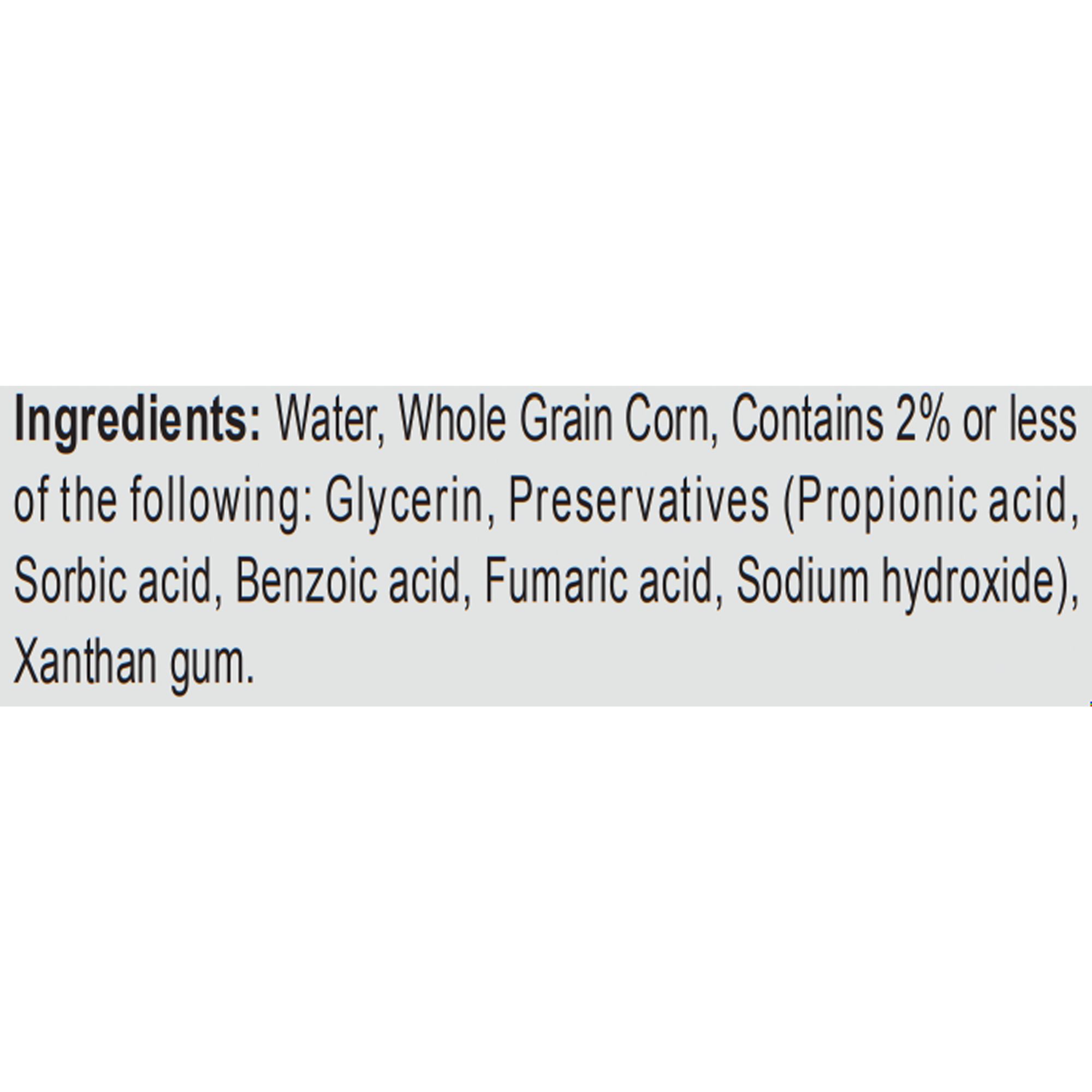 Ingredients: Water, Whole Grain Corn, Contains 2% Or Less Of The Following: Glycerin, Preservatives (Propionic Acid, Sorbic Acid, Benzoic Acid, Fumaric Acid, Sodium Hydroxide), Xanthan Gum, Folic Acid.