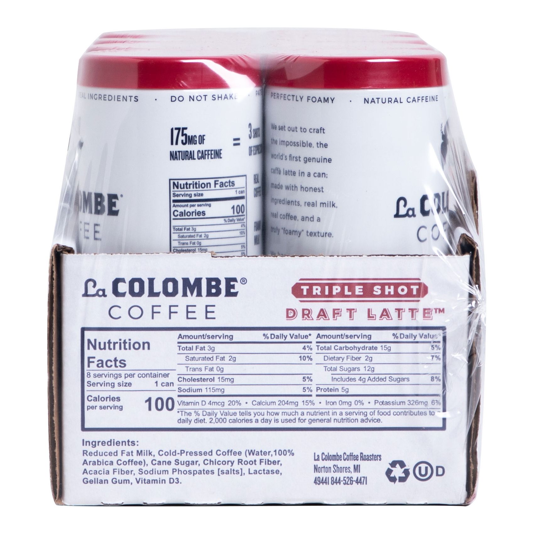 Cafe quality taste and texture, from La Colombe's cafe to your everyday. The full taste and texture of a true cold latte, complete with a frothy layer of silky foam - now with more coffee. Triple Draft Latte is made with whole, real ingredients like nutrient-rich milk and 3 shots of cold-pressed espresso. Lactose-free and minimally, naturally sweetened with cane sugar, for a healthier, stronger jolt. Only 100 calories. Best enjoyed cold.