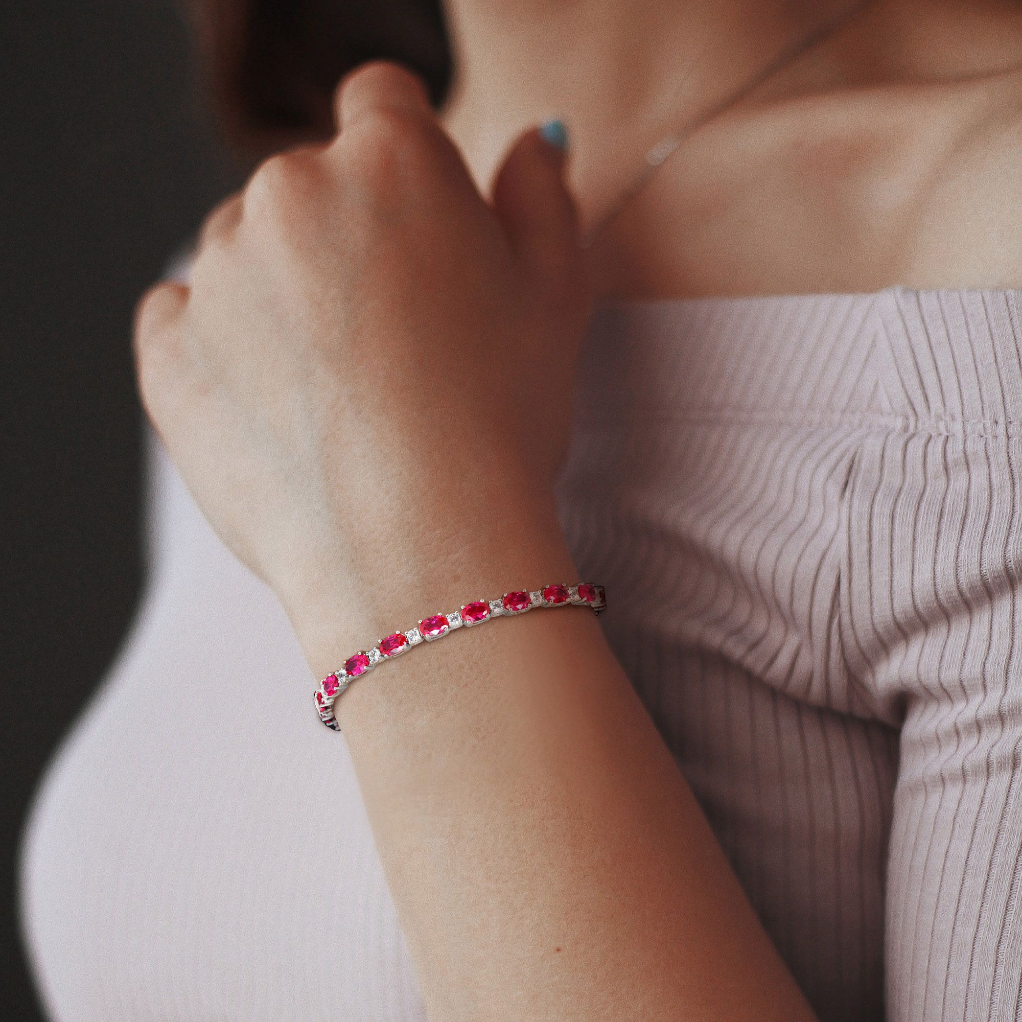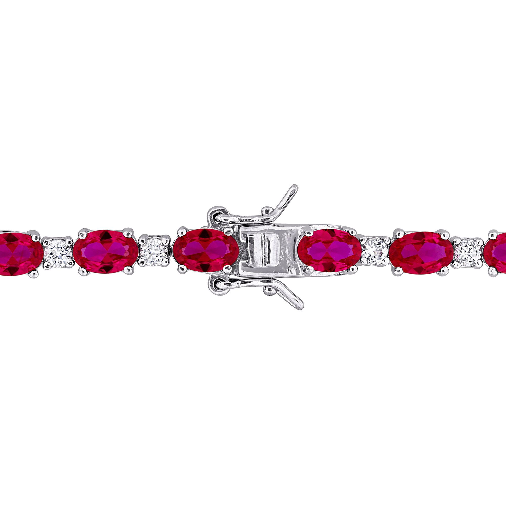Lab-Created Ruby and White Sapphire Tennis Bracelet in Sterling Silver