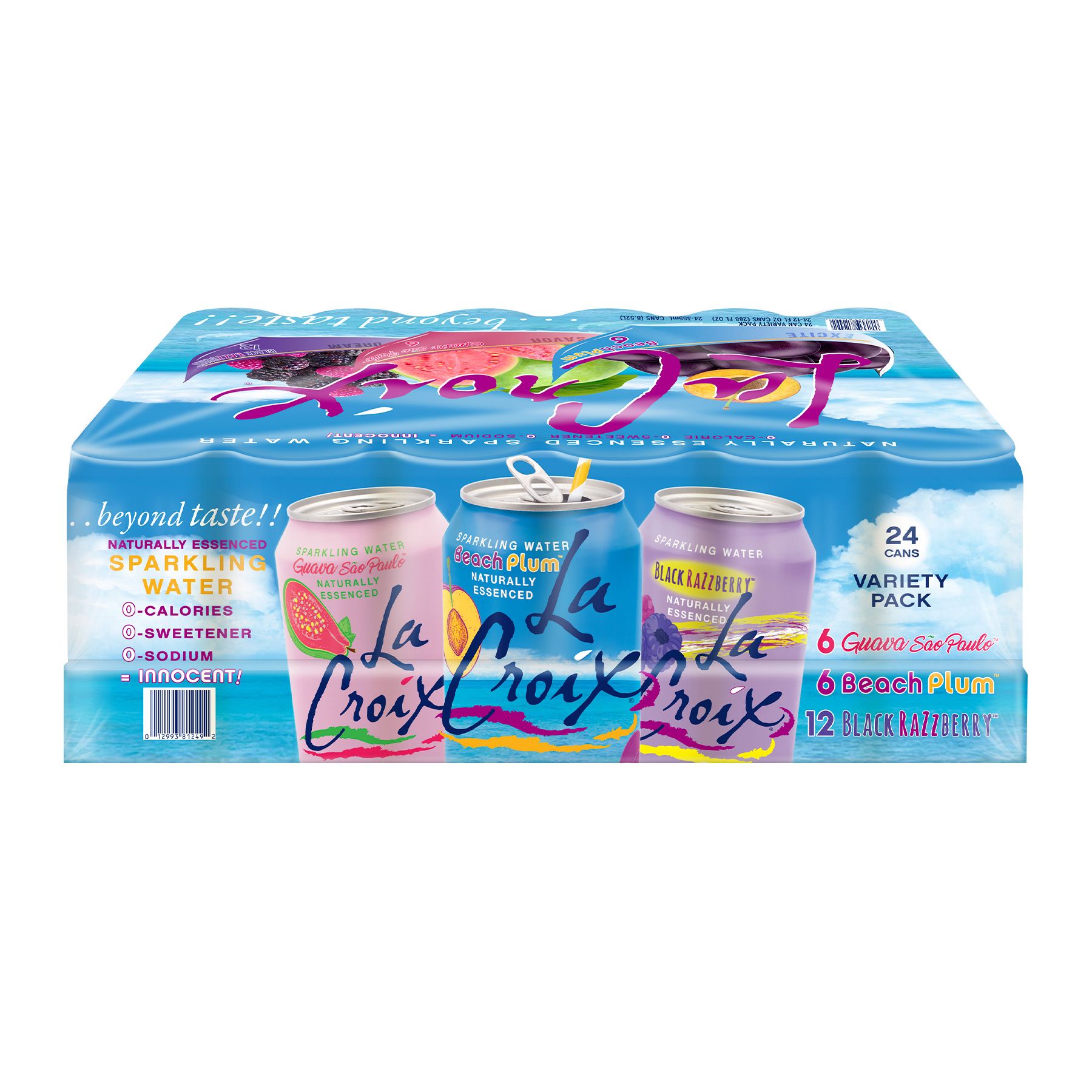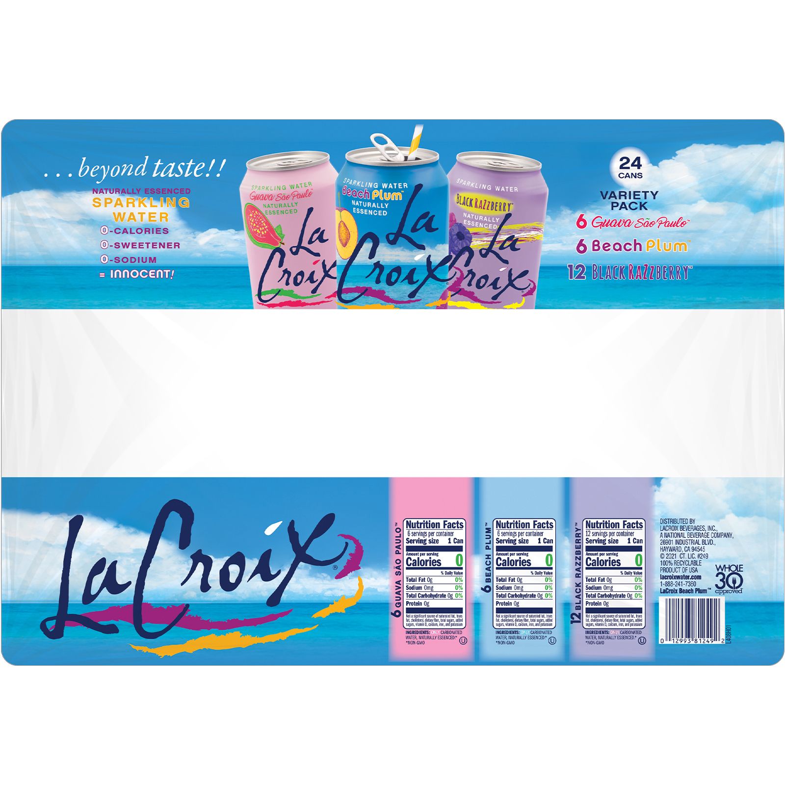 LaCroix Sparkling Black Razzberry, Guava Sao Paulo, Beach Plum Variety Pack, 24 pk.