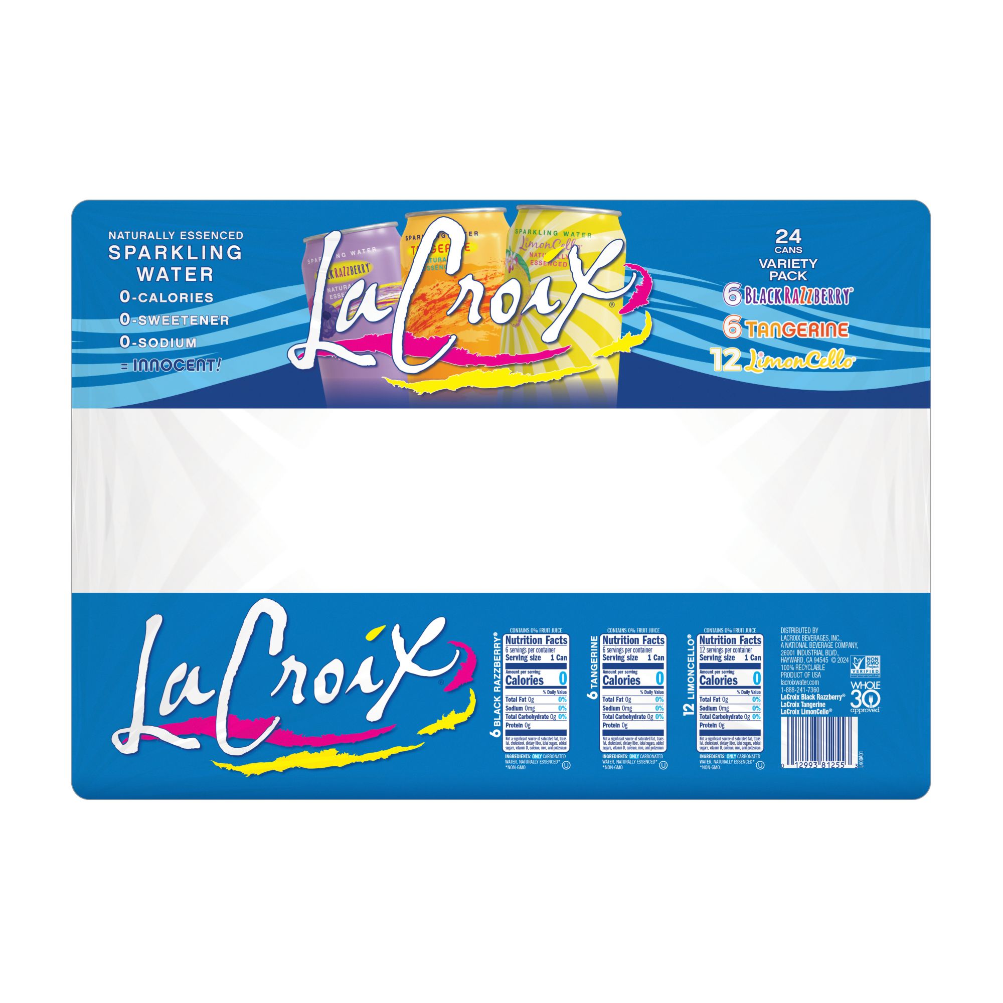 Includes LaCroix Limoncello 12 oz. (12), LaCroix Black Razzberry 12 oz. (6), LaCroix 12 oz. Tangerine (6)