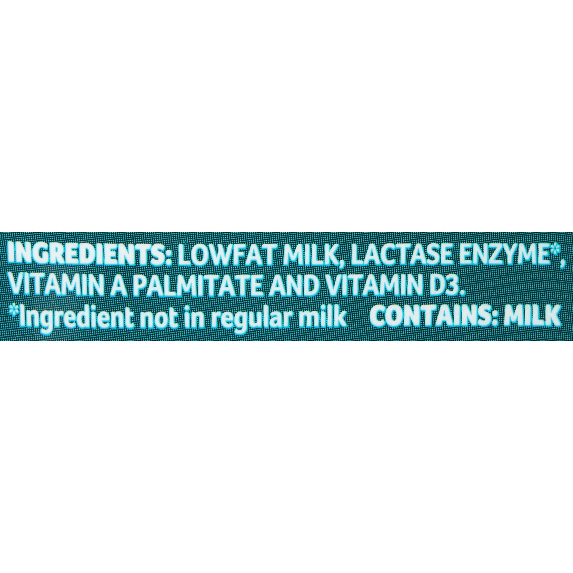 Ingredients: Lowfat Milk, Lactase Enzyme, Vitamin A Palmitate, Vitamin D.