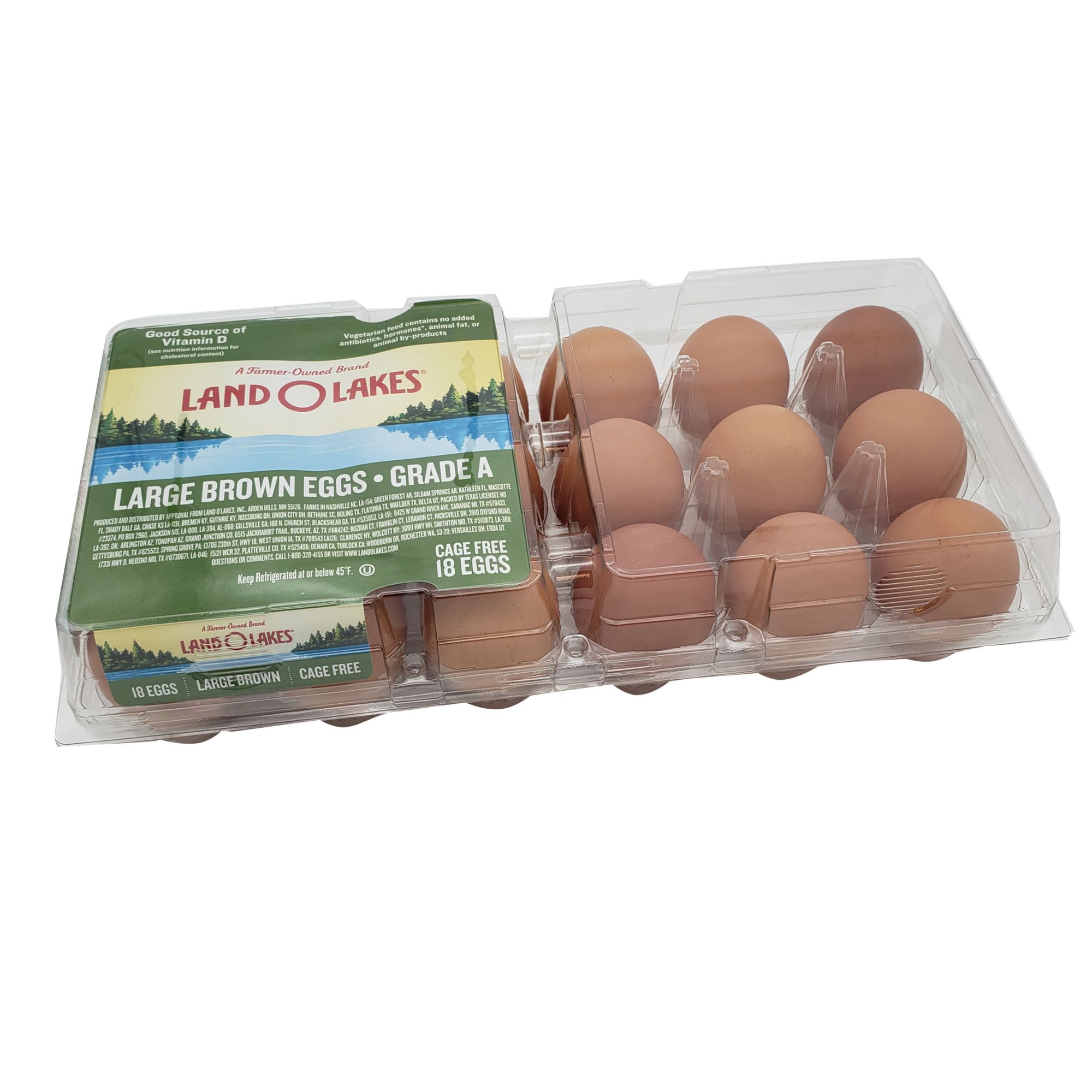Includes large brown cage-free eggs, 18 ct.