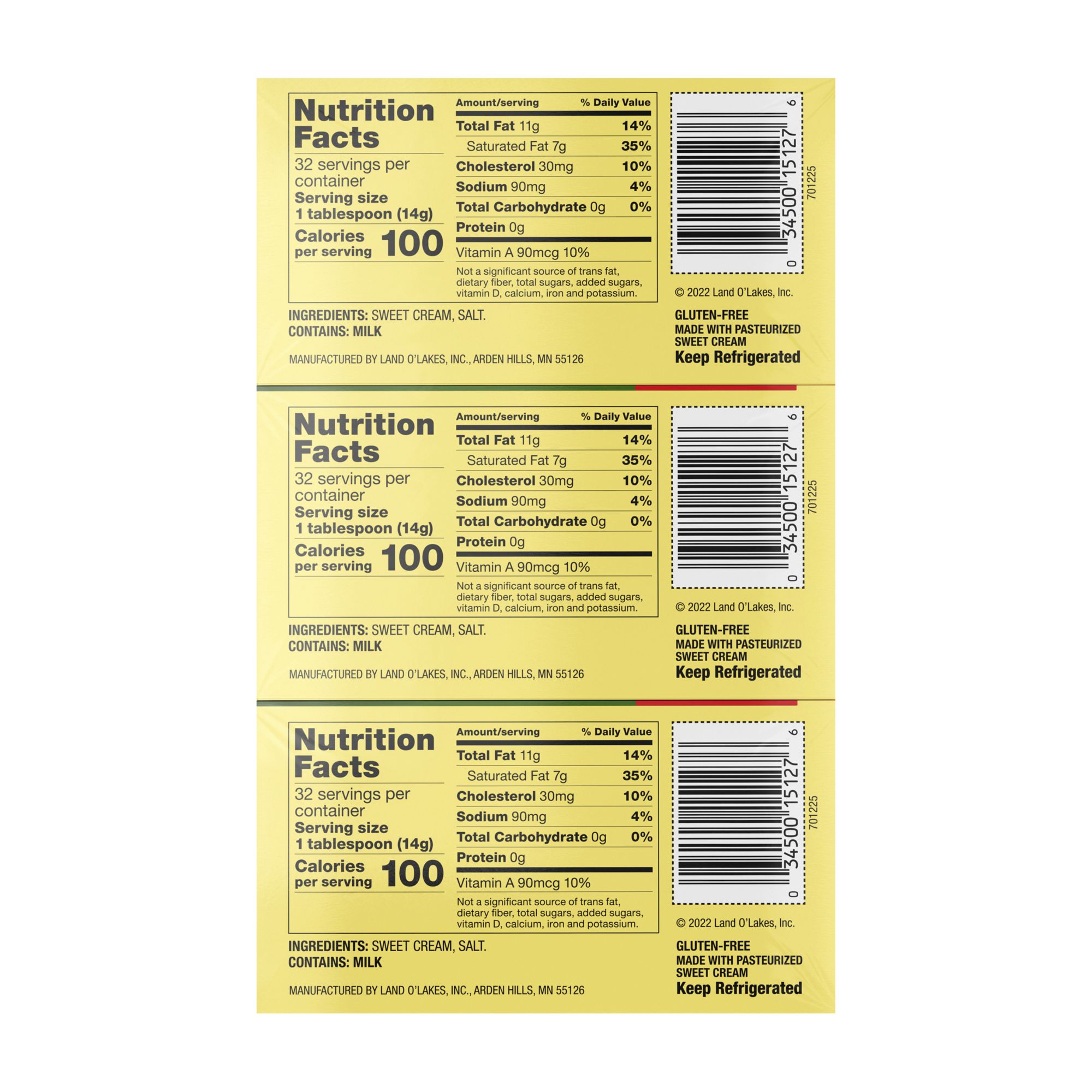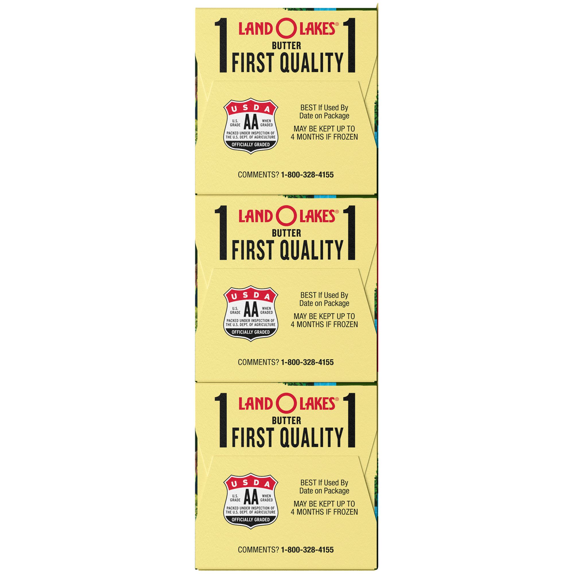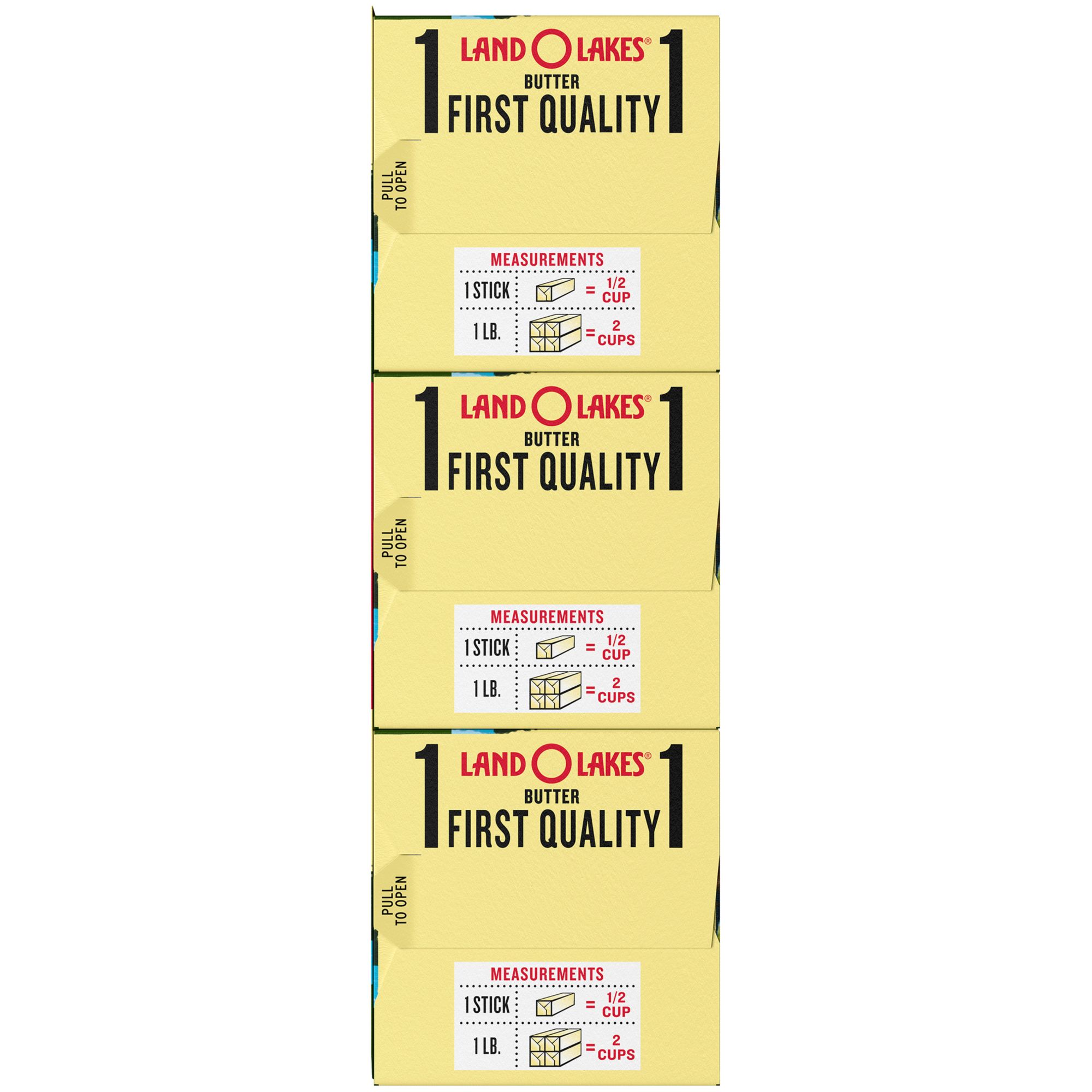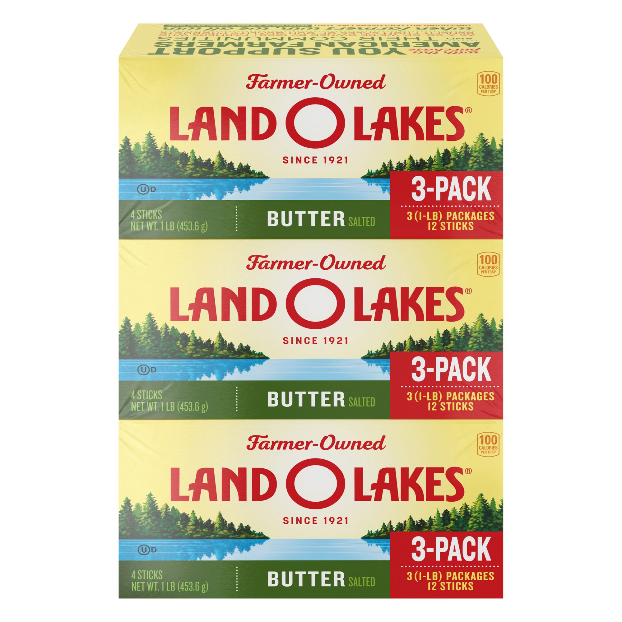 Whether melted, browned, creamed or clarified, Land O'Lakes Salted Butter sticks improve the taste of everything they touch. Land O'Lakes Salted Butter is made with two ingredients - sweet cream and salt. Delight your family and friends at spring brunch with the rich flavor of Land O'Lakes Salted Butter. Use these 12 salted butter sticks in your favorite dinner recipes or to create delicious baked goods like muffins, pies, cookies and cakes. It's also ideal for making grilled cheese sandwiches with a golden, crispy edge. No matter how you use it, this stick butter will take your cooking to a whole new level. Land O'Lakes Butter comes in pre-measured, ready-to-use butter sticks that are individually wrapped in a FlavorProtect wrapper to protect the flavor you love. You can enjoy these salted butter sticks knowing you are supporting farmer-owners in communities like yours all across the country. Contains 12 sticks, three - 1 lb packs in total.
