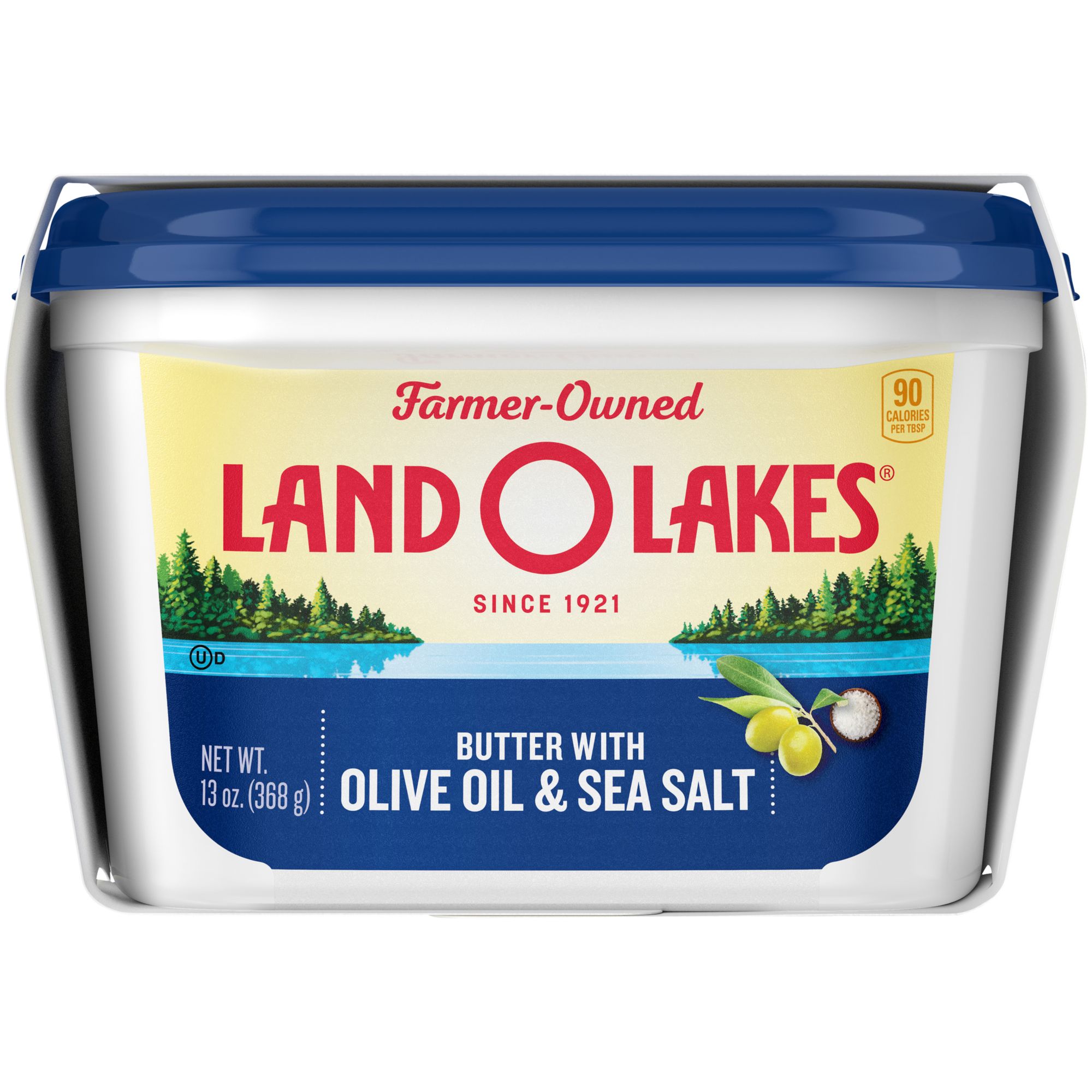Perfect for sauteing your main course or enhancing sweet cinnamon rolls, Land O Lakes Butter with Olive Oil & Sea Salt is the rich creaminess of the butter you love with the goodness of olive oil. It's spreadable straight from the refrigerator and made with simple ingredients.