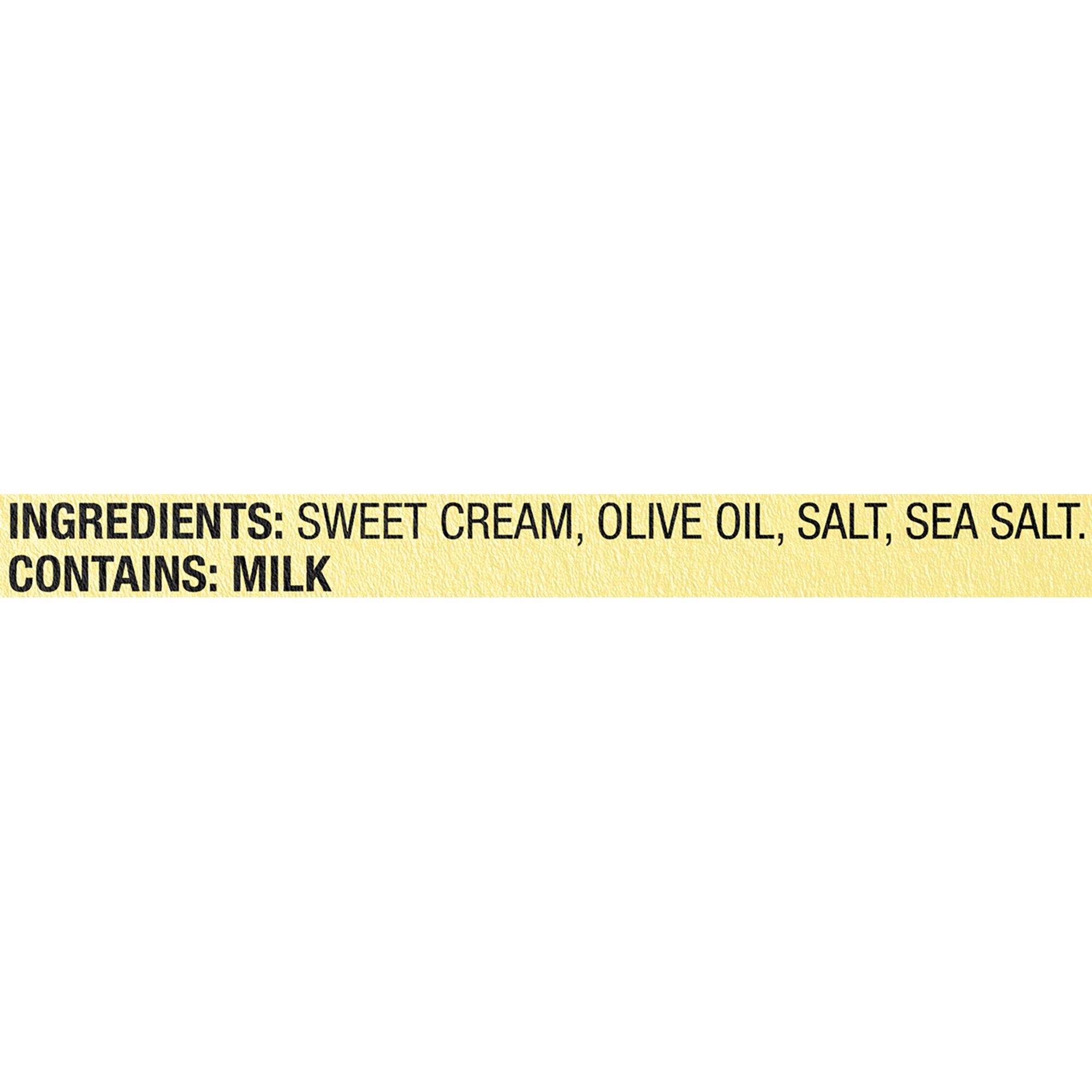 Simple ingredients: sweet cream, olive oil, salt, and sea salt Spreadable right out of the refrigerator Great for spreading, topping, and cooking Includes two 13-oz. packs of butter with olive oil and sea salt