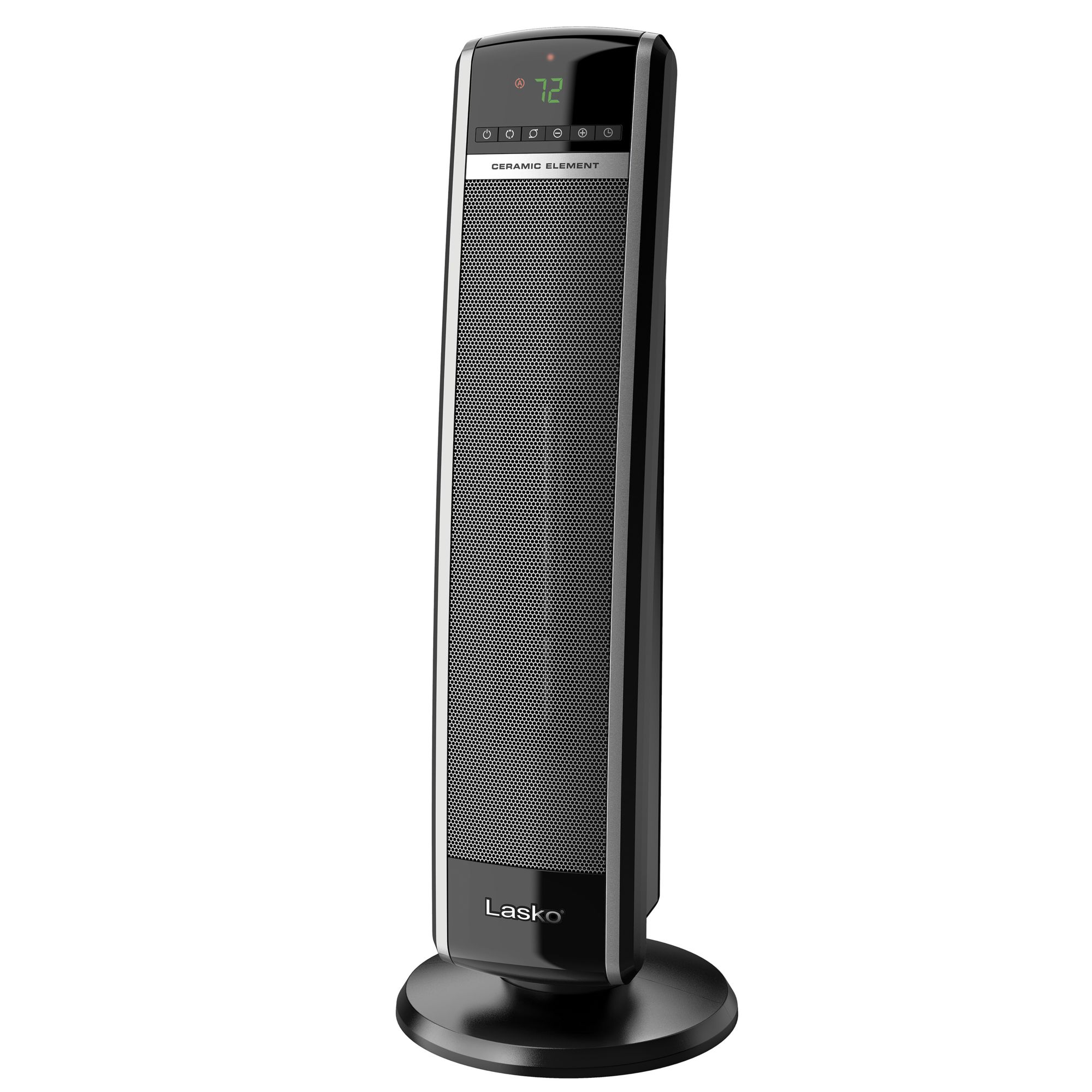 Stay warm with the Digital Ceramic Tower Heater with Remote Control by Lasko. Provides 1500 W of comforting heat for living rooms, bedrooms, and virtually any room in the house that needs a little extra warmth. Features two quiet heat settings, plus an auto thermostat-controlled function and auto shut-off timer. The easy-to-read digital display and the multi-function remote control make operating this electric heater easy and convenient. Includes built-in safety features, like a safe ceramic element, overheat protection, and a cool-touch exterior. The simple base assembly is required and comes with a 3-year warranty.