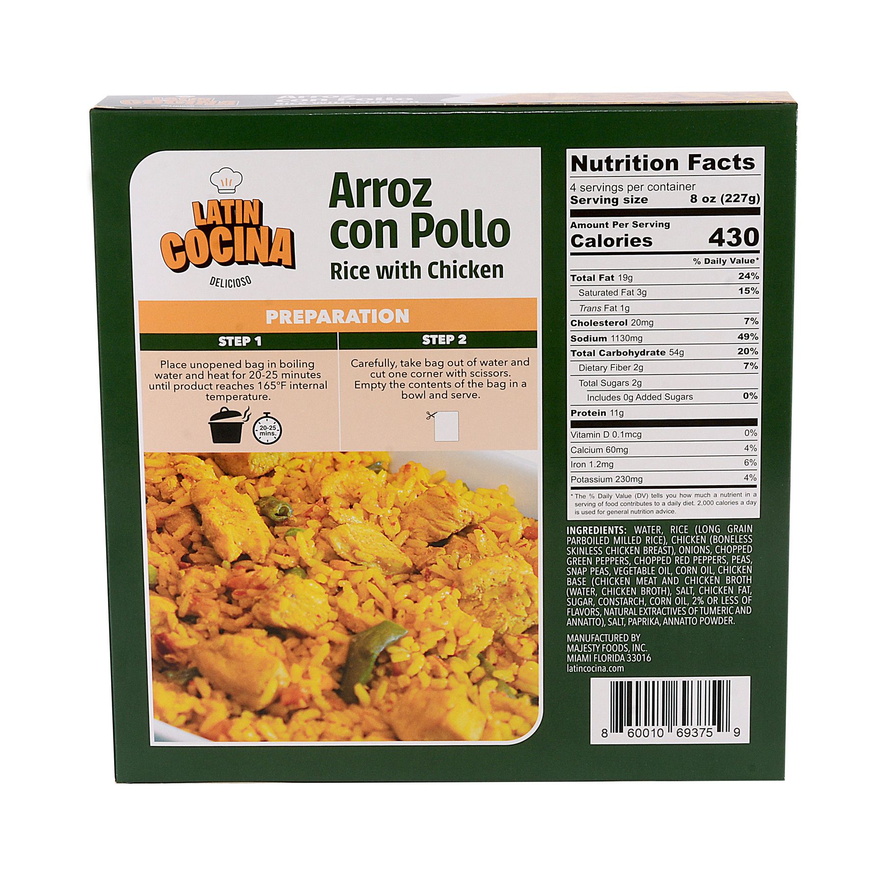 Includes arroz con pollo meal, 2 lbs.
