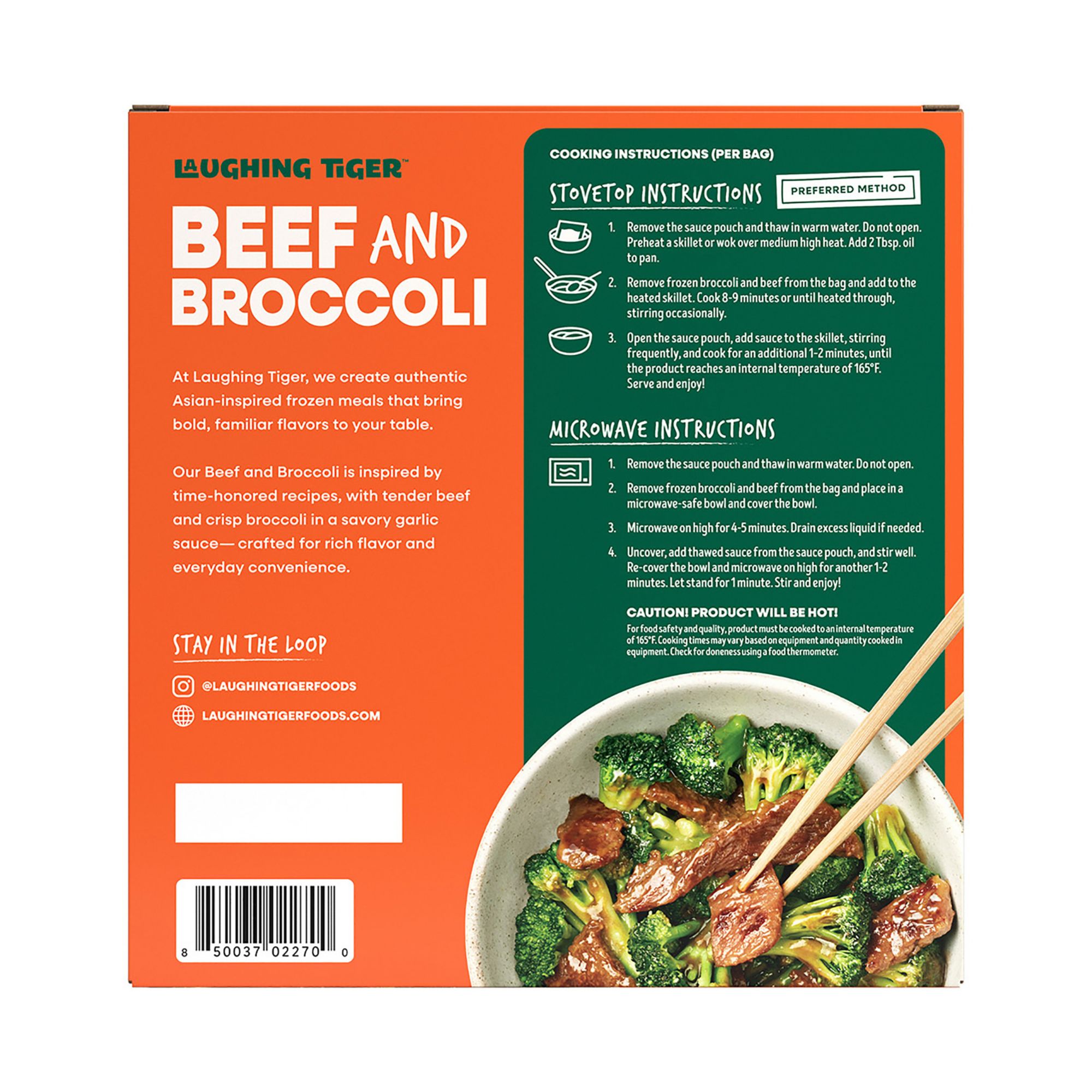 Laughing Tiger Beef & Broccoli, Frozen Meal, Garlic Soy Sauce, 40 oz.