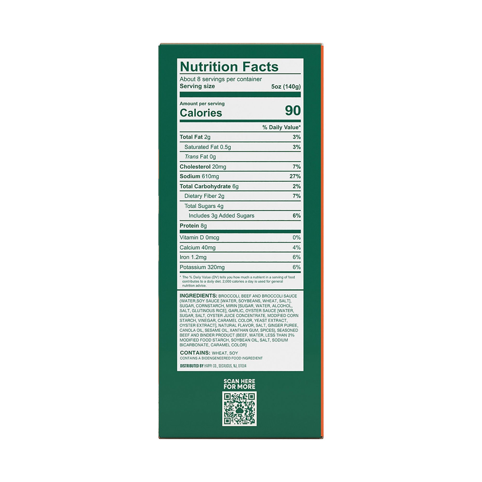 Includes beef and broccoli meal, 40 oz.