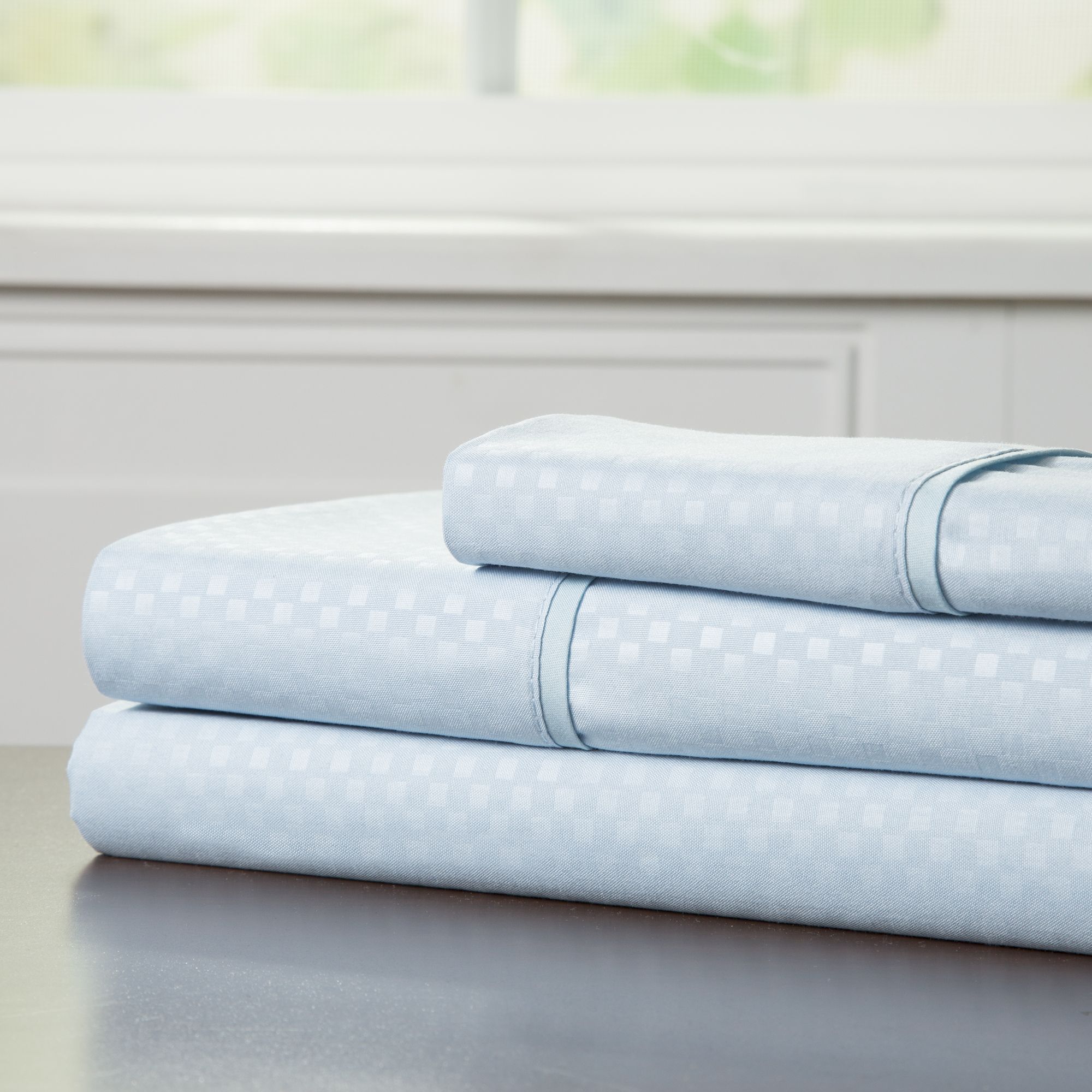Fitted sheet features deep pockets, which prevents the sheets from pulling up in the middle of the night and promotes a restful sleep Fitted sheet is fully elasticized to prevent bunching and provide comfort with a tight fit around mattresses Durable and lightweight, this sheet set provides peaceful relaxation while maintaining shape around your mattress Timeless checkered embossed design on these sheets balances easily with any home deco Soft and comfortable sheets are machine washable and dryable for your convenience Made with quality material that remains soft to the touch and is fade- and wrinkle-resistant Bed linens have a luxurious thickness at 90 GSM 2 pillowcases with full, queen and king sizes, 1 pillowcase with twin and twin XL sizes Includes pillowcase(s), 1 flat sheet, 1 fitted sheet Warranty: 30 days