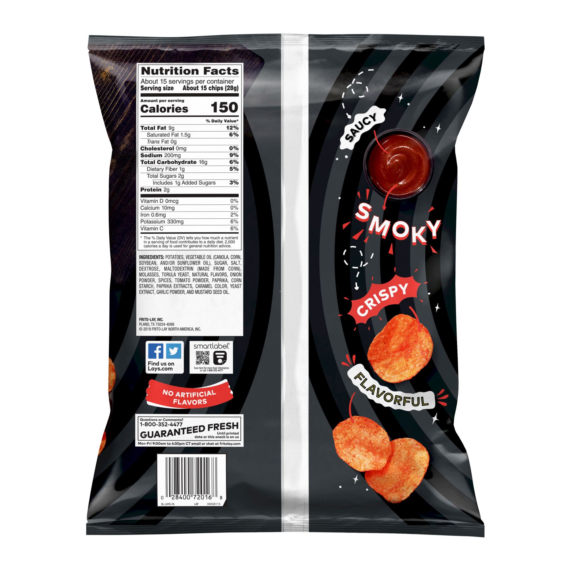 Wherever celebrations and good times happen, the Lay's brand will be there just as it has been for more than 75 years. With flavors almost as rich as their history, they have a potato chip or crisp flavor guaranteed to bring a smile on your face. It all starts with farm-grown potatoes, cooked and seasoned to perfection. Then Lay's adds the spicy sweetness of BBQ sauce. So every Lay's potato chip is perfectly crispy and delicious. Happiness in Every Bite.