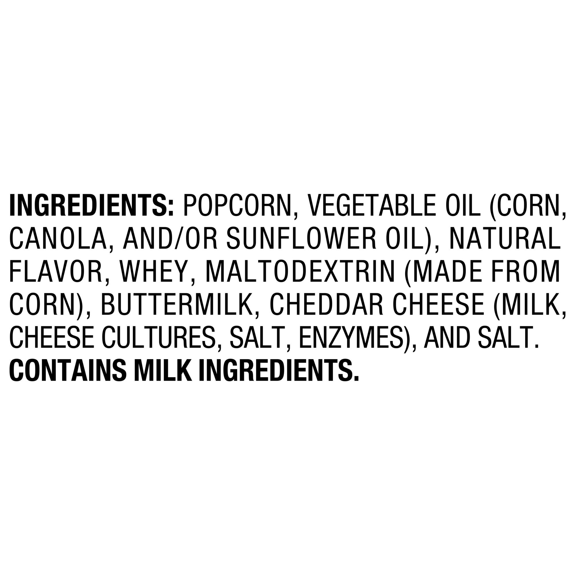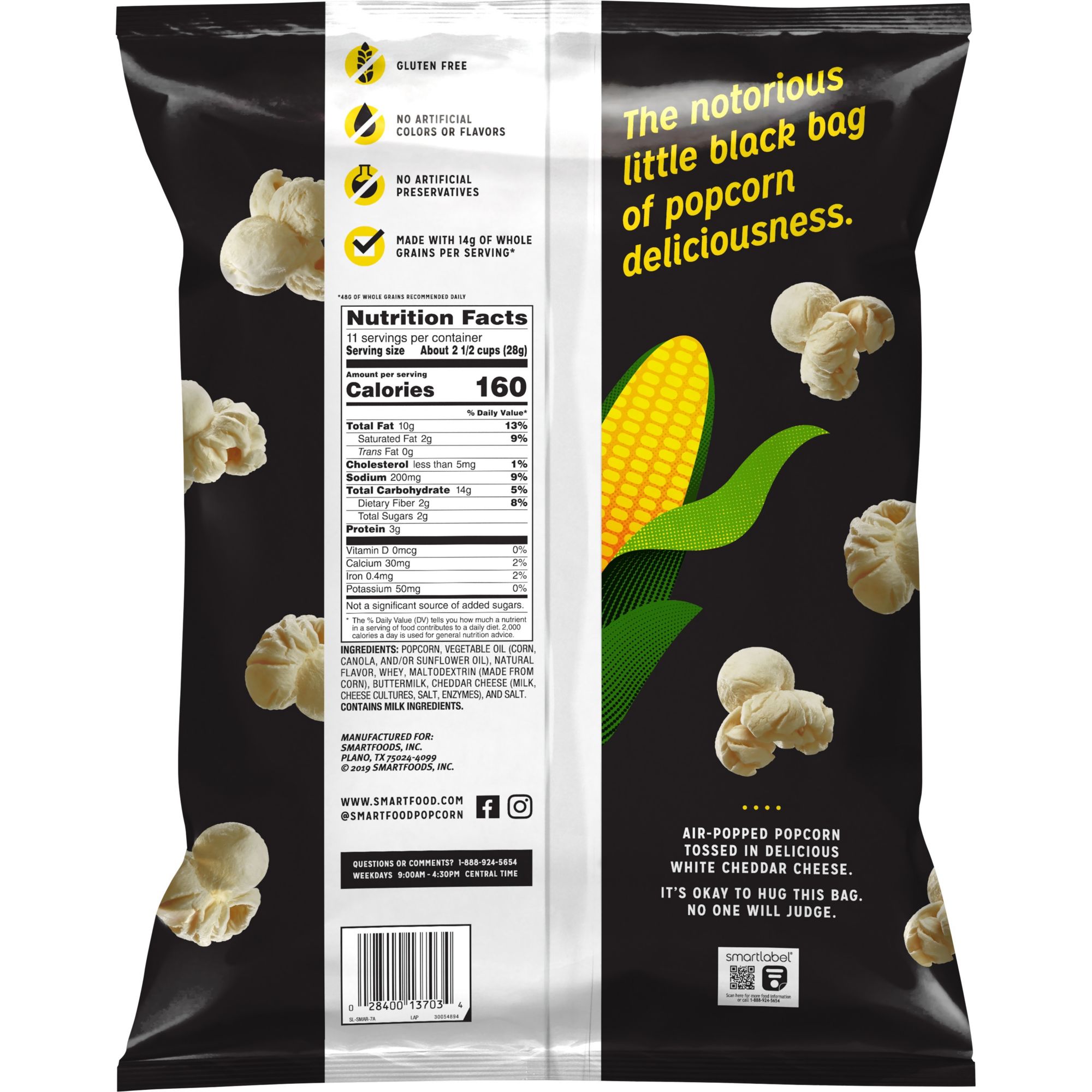 Ingredients: LAYS CLASSIC: Potatoes, Vegetable Oil (Sunflower, Corn and/or Canola Oil), and Salt. SMARTFOOD WHITE CHEDDAR POPCORN: Popcorn, Vegetable Oil (Corn, Canola, and/or Sunflower Oil), Cheddar Cheese (Milk, Cheese Cultures, Salt, Enzymes), Whey, Buttermilk, Natural Flavor, and Salt.