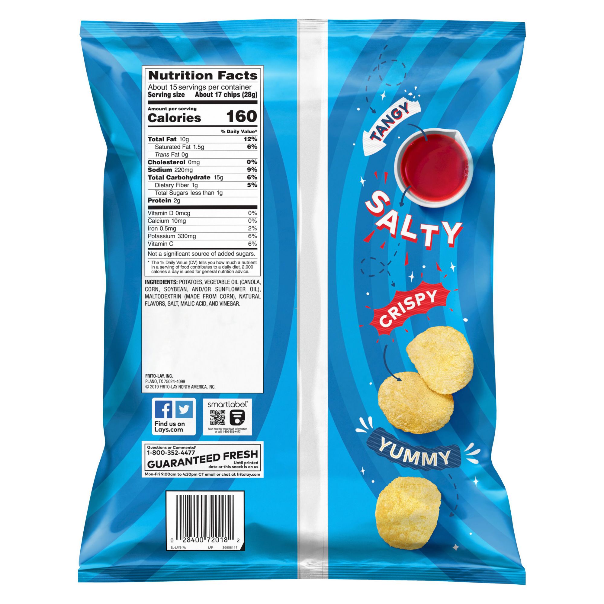 Wherever celebrations and good times happen, the Lay's brand will be there just as it has been for more than 75 years. With flavors almost as rich as their history, they have a potato chip or crisp flavor guaranteed to bring a smile on your face. It all starts with farm-grown potatoes, cooked and seasoned to perfection. Then they add just the right balance of tangy vinegar. So every Lay's potato chip is perfectly crispy and delicious. Happiness in Every Bite.
