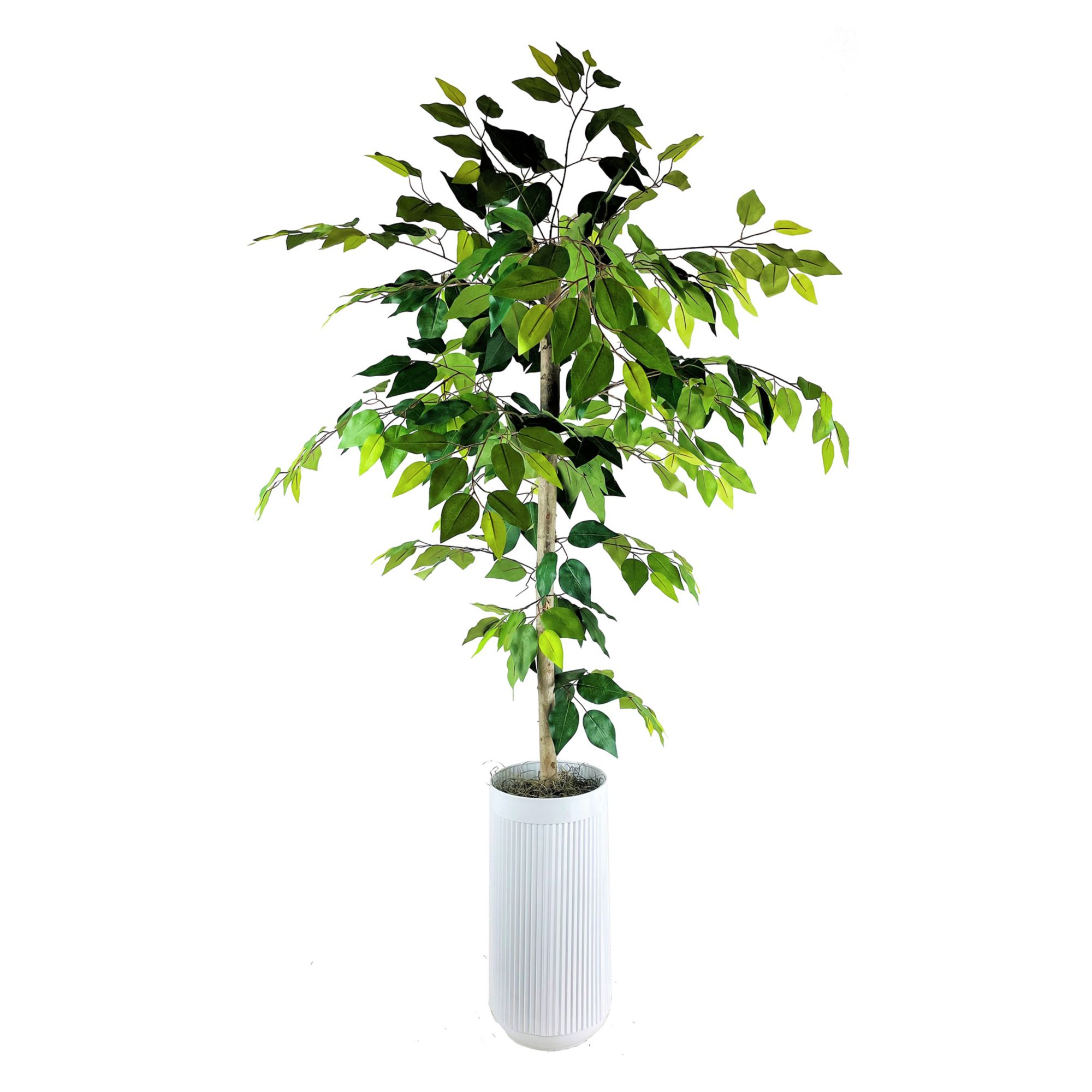 LCG Florals Ficus Tree in White Ribbed Planter, 5-Ft.