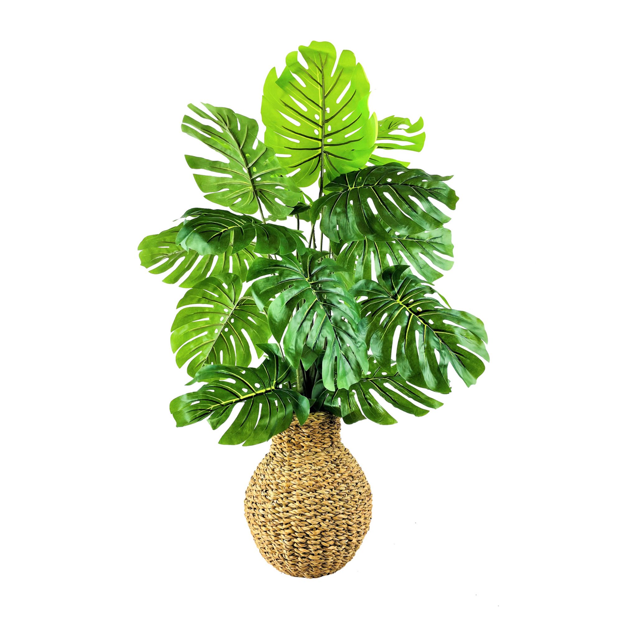 LCG Florals Monstera in Woven Basket Urn, 36-Inch