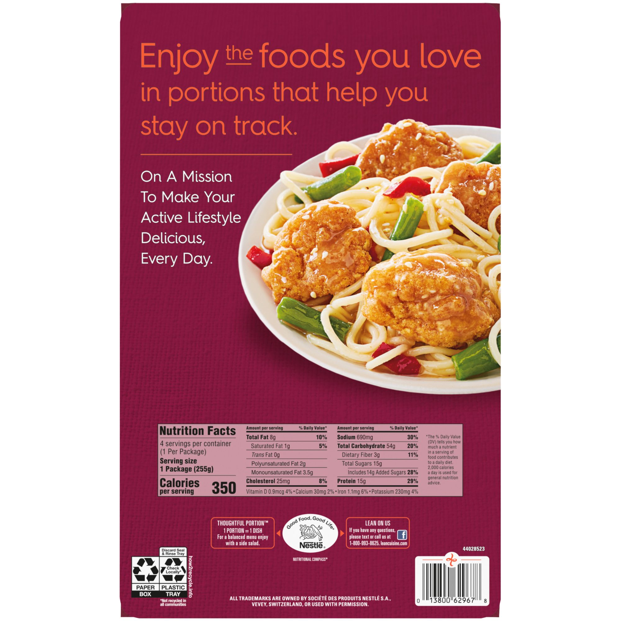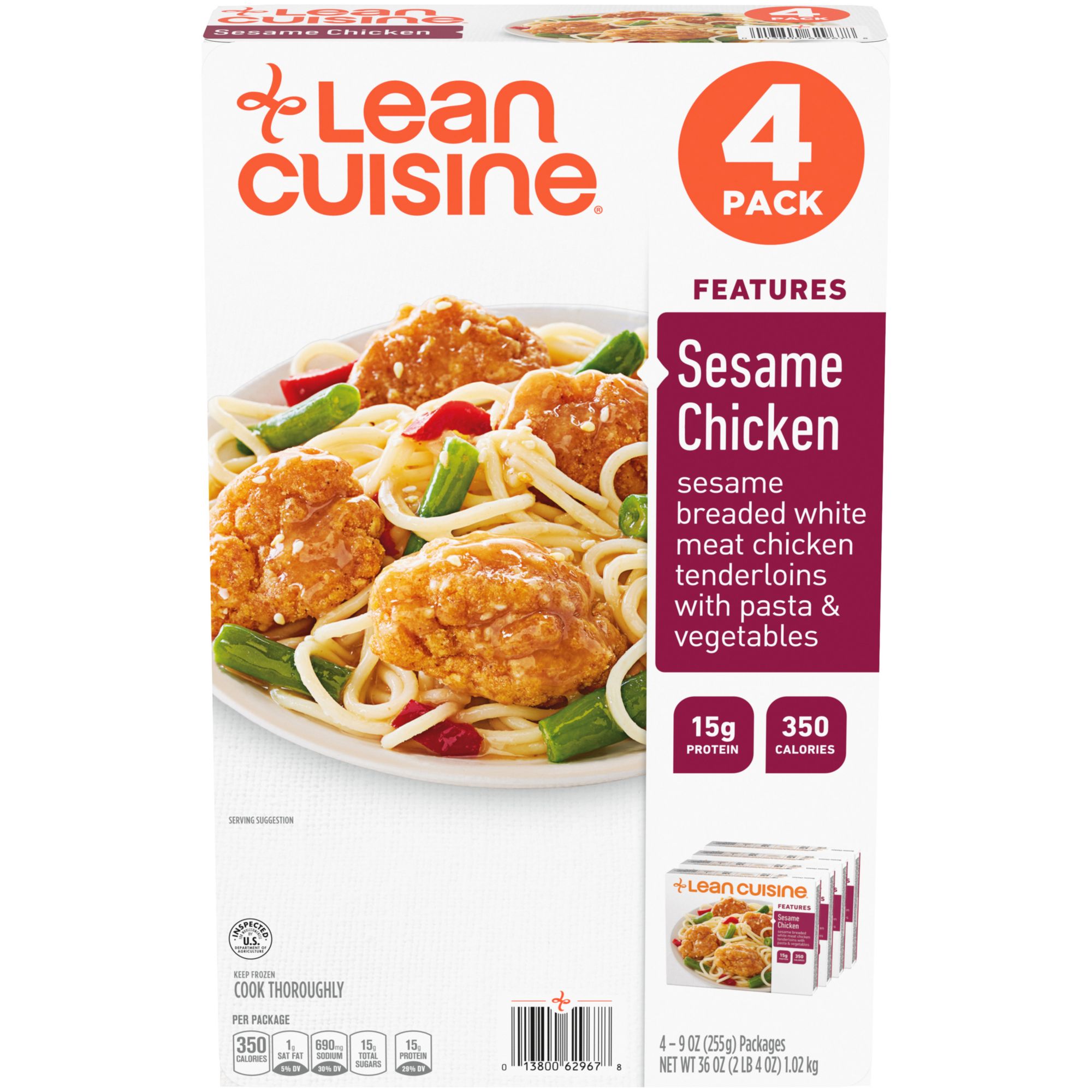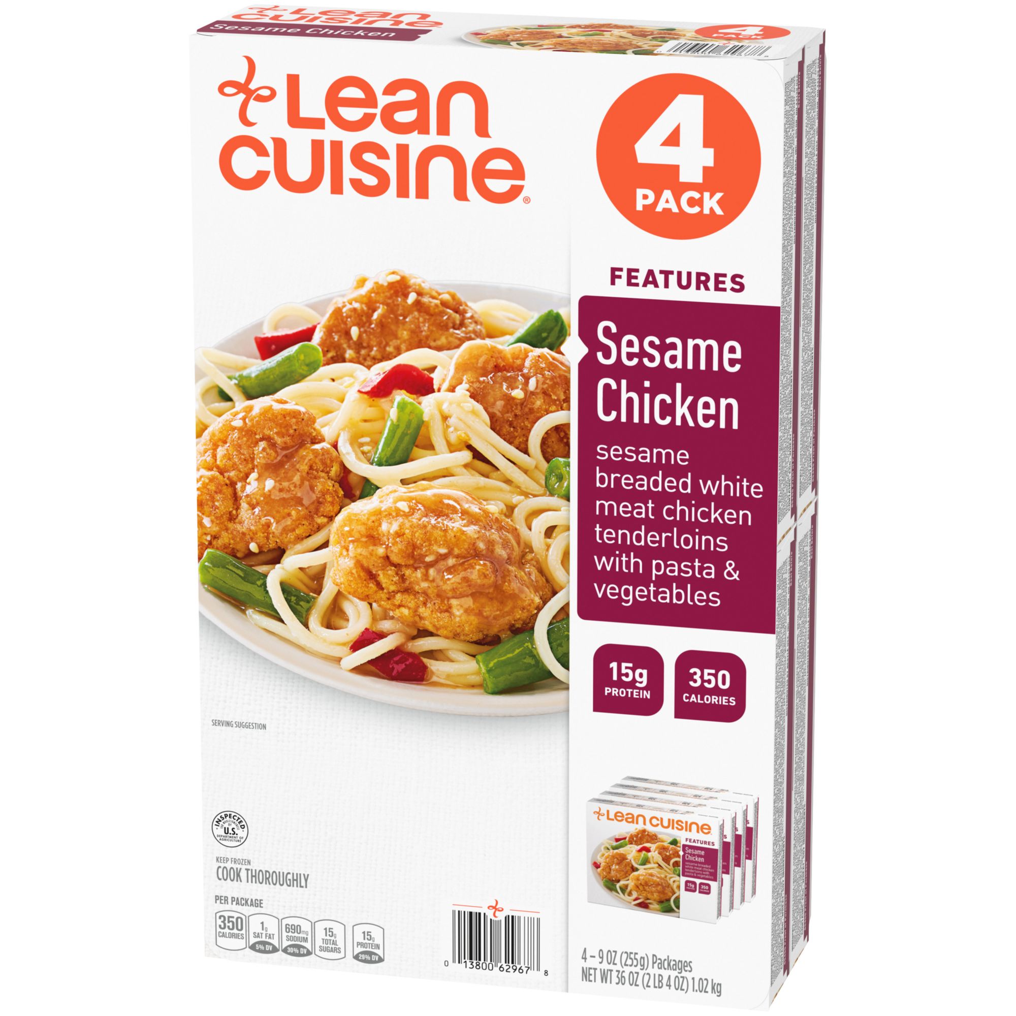 Each Lean Cuisine Sesame Chicken 4pk contains four individual microwavable meals