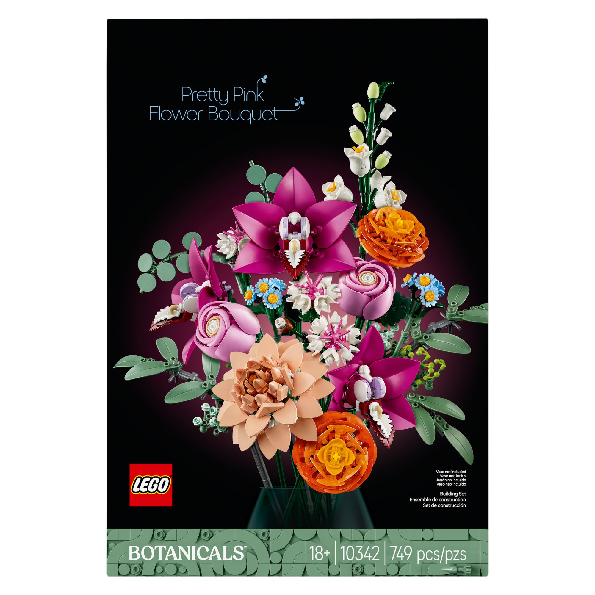 Cultivate creativity with the LEGO Botanicals Pretty Pink Flower Bouquet (10342) building kit for adults. Bursting with authentic blooms and lovely colors that will never fade, this LEGO flower decor set is a delightful gift for women, men, and nature lovers. Budding florists can relax and unwind as they build the bouquet, which consists of 15 LEGO flower stems, including daisies, cornflowers, eucalyptus, elderflowers, roses, ranunculus, cymbidium orchids, a waterlily dahlia, and a campanula. All the stems are adjustable, encouraging builders to arrange a bespoke bouquet that they can use as a floral home or office decor. For added customization, these artificial flowers can be arranged with other LEGO bouquets, sold separately, to create a larger, unique floral display. A thoughtful Mother’s Day gift, Valentine’s Day gift, or housewarming gift, these customizable LEGO flowers are sure to be treasured forever by loved ones. Contains 749 pieces.