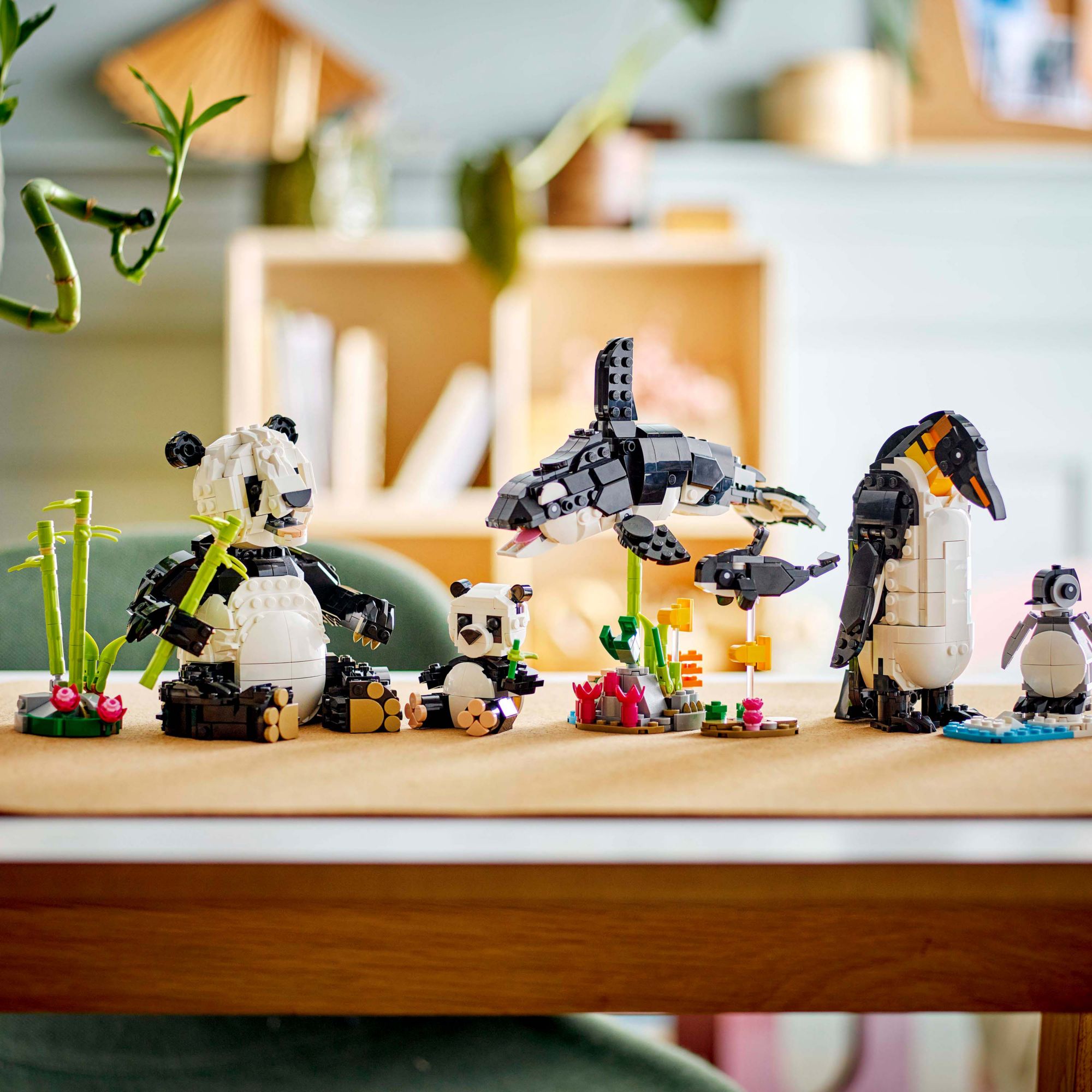 Endless play possibilities – Kids can stage stories with three different animal figurines (models cannot be built simultaneously): A panda toy with its cub, an orca figure with its calf and a penguin toy with its chick