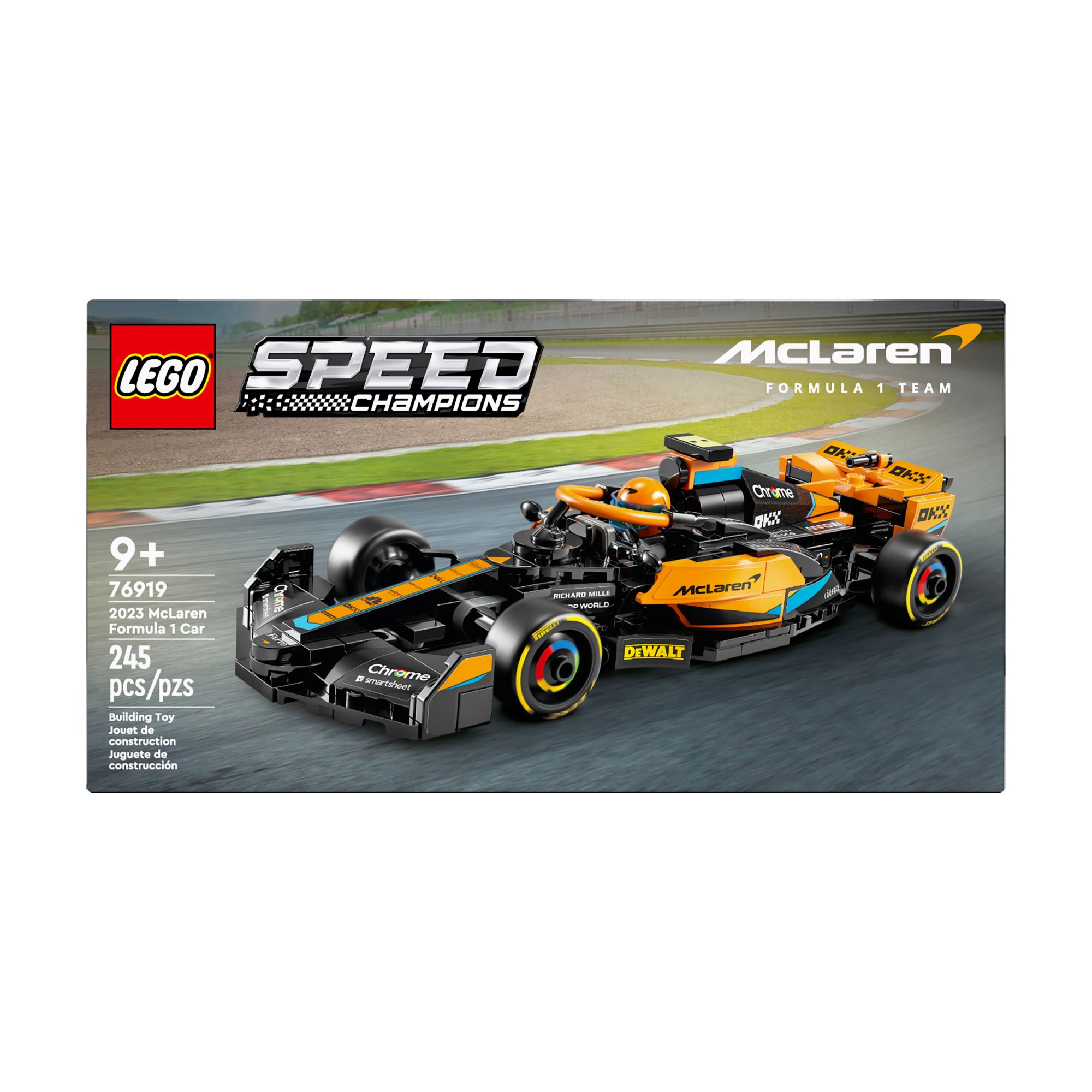 Boys and girls aged nine and up can collect, build, and display this LEGO Speed Champions 2023 McLaren Formula one Race Car (76919) toy vehicle. This sleek F1 toy car for kids includes several iconic design details from the real-life racing car that proudly celebrated the 60th anniversary of McLaren Racing and competed in the 2023 Formula One World Championship. The McLaren toy vehicle includes many realistic features: the black and papaya livery, the team sponsor logos, the wheels with Pirelli print, and the papaya safety halo. The buildable race car toy also comes with a driver minifigure for kids to place behind the wheel for exciting play races. LEGO Speed Champions sets let kids and passionate car fans build replica versions of some of the world’s most iconic vehicles. They will be thrilled to create high-quality models from LEGO bricks, featuring distinctive details. Each car toy can be created with the LEGO Builder app, which guides you and your child on an easy and intuitive building adventure. Contains 245 pieces.