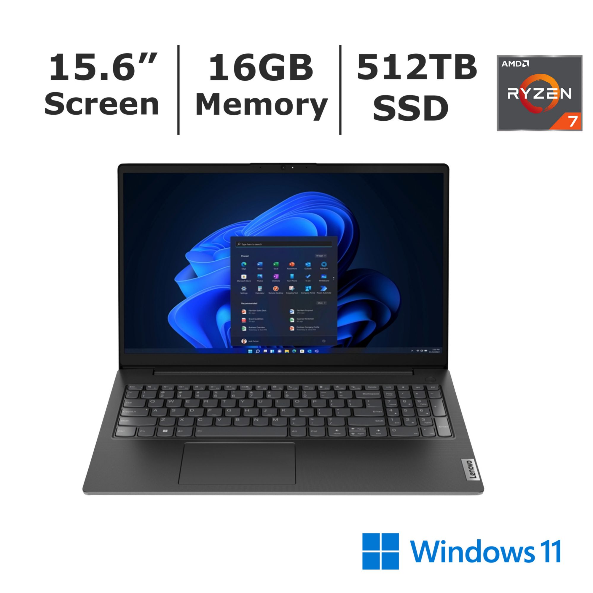 Lenovo V15 15.6" FHD Notebook, AMD Ryzen 7 Processor, 16GB Memory, 512GB SSD, Windows 11 Home