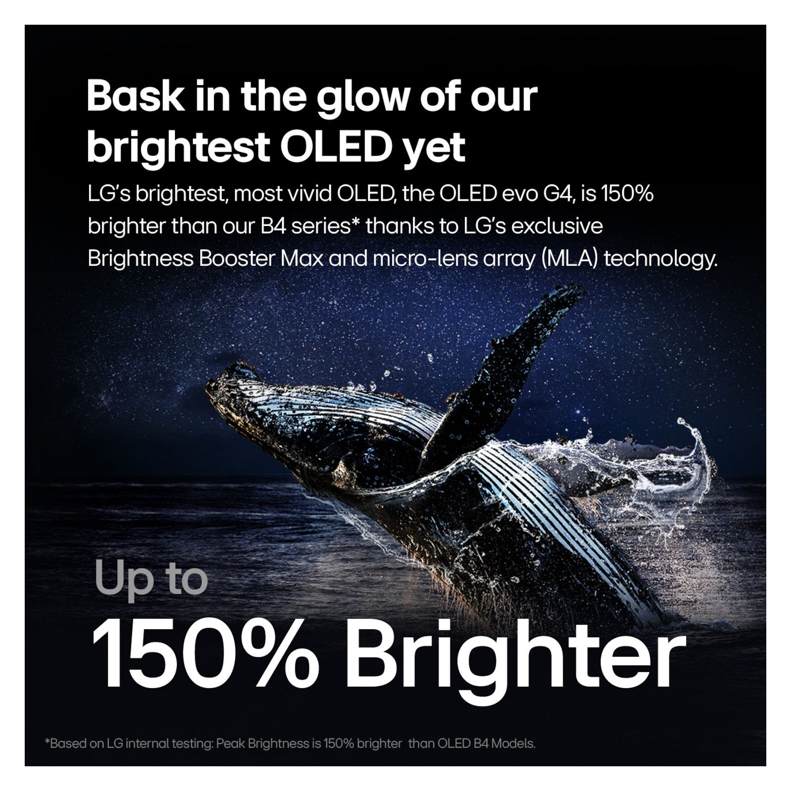 The LG OLED evo G4-Series is powered by the α11 AI Processor for even better picture and performance. Brightness Booster Max produces up to 150% brighter images,* for luminous, high-contrast picture quality, even in well-lit rooms.
