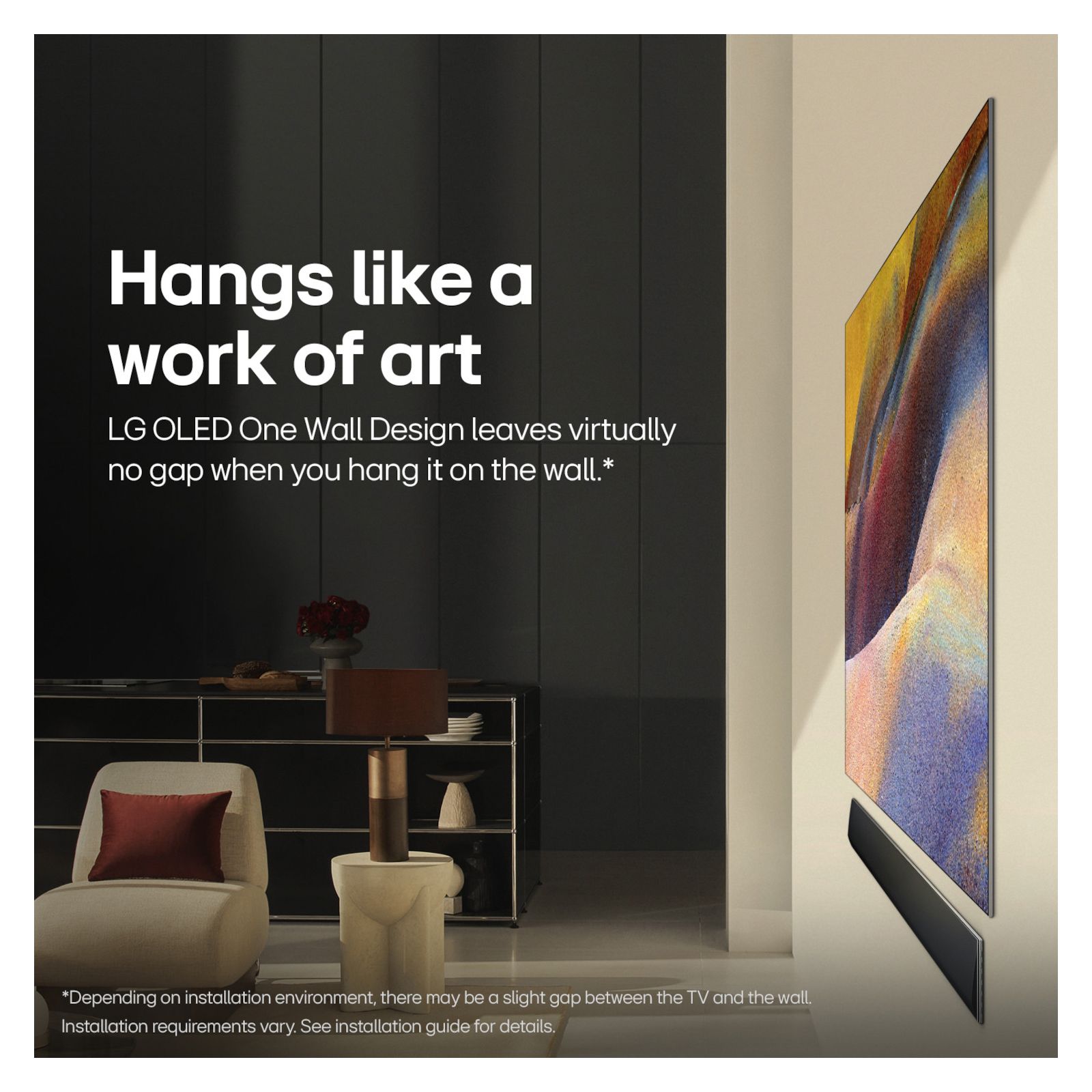 Display your OLED like a picture with the included wall bracket that creates a flush mount.** When you're not watching, you can display art, photos and other content to blend the LG OLED evo G4 into your surroundings. Search less and stream more, thanks to the next generation of AI technology from LG webOS 24. And with Quick Cards, you can group your favorite apps and use the Magic Remote to easily find exactly what you're looking for—like instant access to over 300 free channels with LG Channels.*** Every LG OLED comes loaded with Dolby Vision for extraordinary color, contrast and brightness, plus Dolby Atmos for sound you can feel all around you. You'll land in the center of the action with FILMMAKER MODE, allowing you to see films in the director's original formatting. Plus, with a 5-year panel warranty,**** you can watch on and on with confidence and peace of mind that we stand behind our premium LG OLED evo TVs.