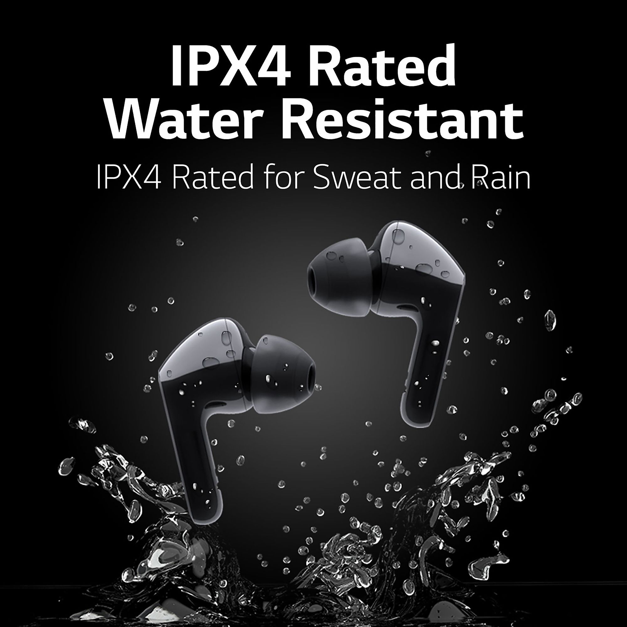 Close VideoWater ResistantIPX4 Rated for Sweat and RainDon't sweat it: water resistance has your earbuds protected when you're sweating while working out or walking in the rain. TONE Free HBS-FN5W earbuds are IPX4-rated*, meaning that they are resistant to water splashes from any direction, so you can keep listening—rain or shine.