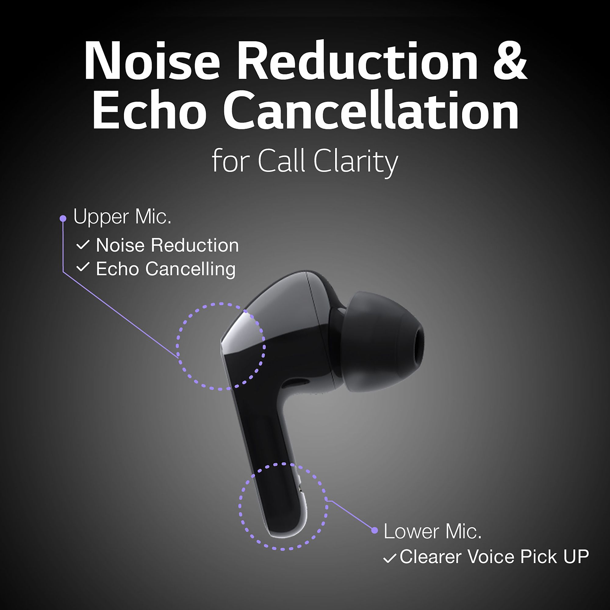 - Dual Microphones on each earbud enhance call clarity