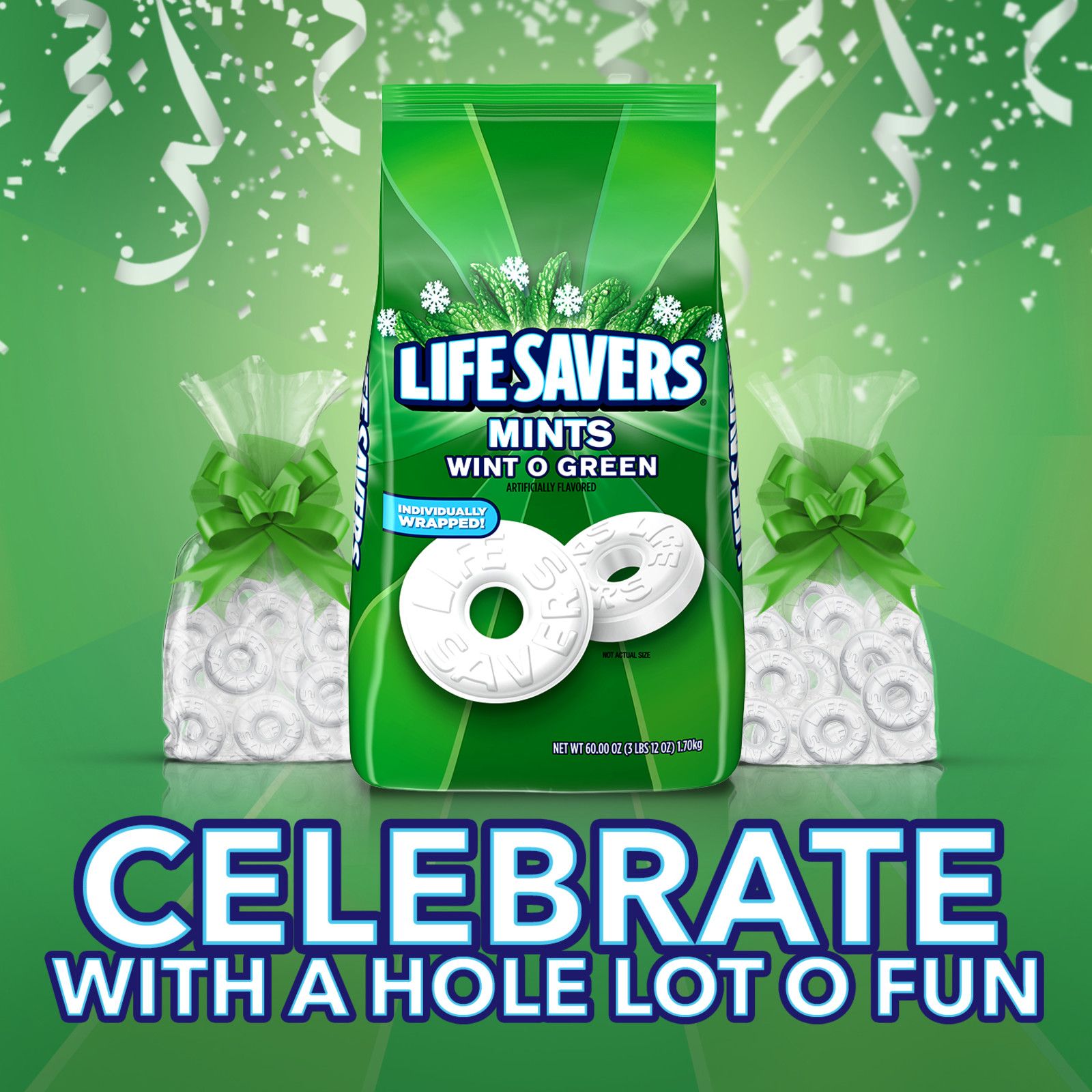- Contains one (1) 60-ounce bag of Life Savers Wint-O-Green Hard Candy