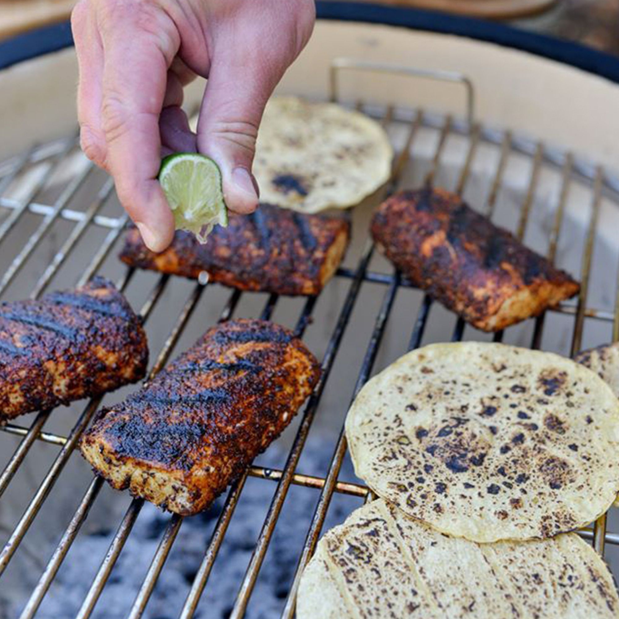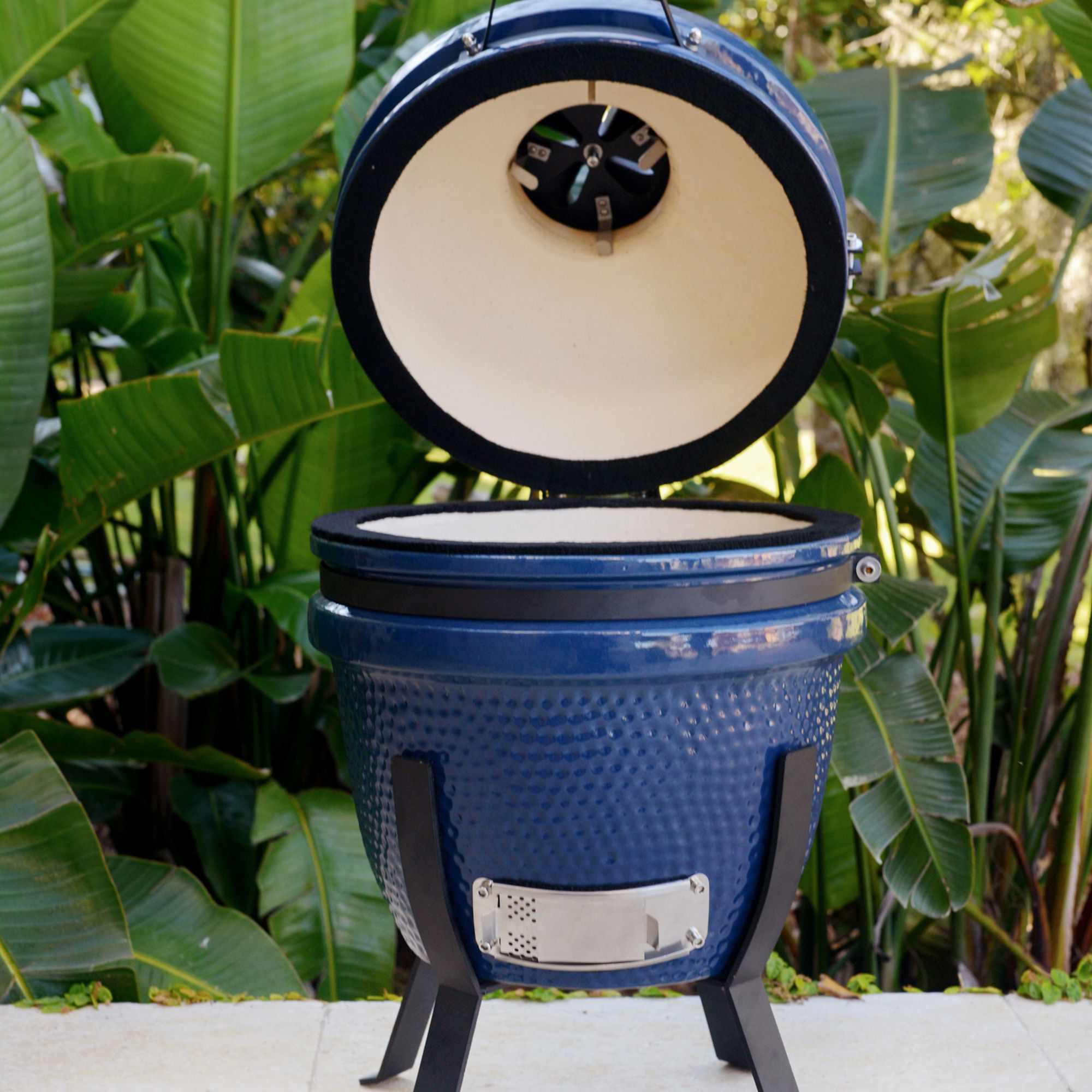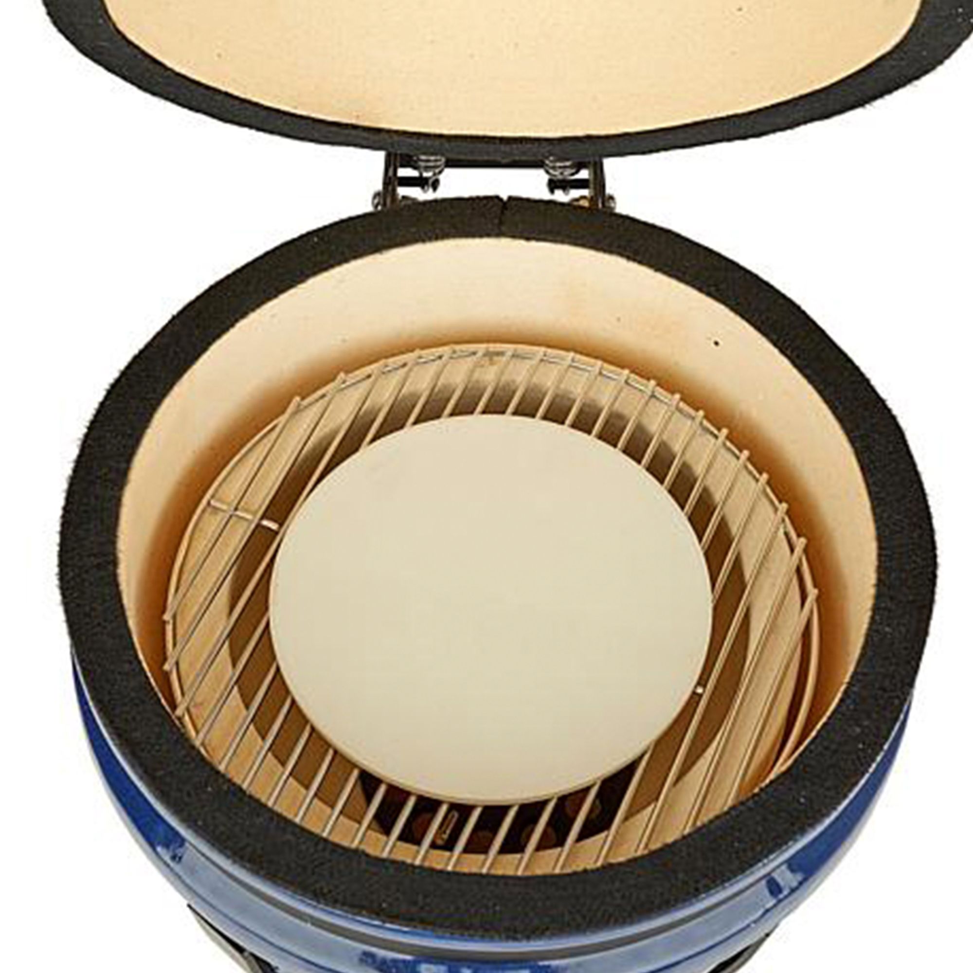 133 sq. in. of cooking surface with 13" grill grate 6-in-1 Kamado grill allows you to grill, smoke, roast, sear, braise and even bake Durable heat retaining ceramic construction is perfect keeping the heat in and reducing charcoal usage Fueled with lump charcoal (sold separately) Quick and easy assembly -- set up and use in minutes Versatile cooking great for roasting, grilling, smoking, searing, or baking Adjustable dual vent temperature controls Top and bottom vent controls slides open / closed for superior temperature regulation Some assembly required Includes ceramic grill, cover, and owner's manual