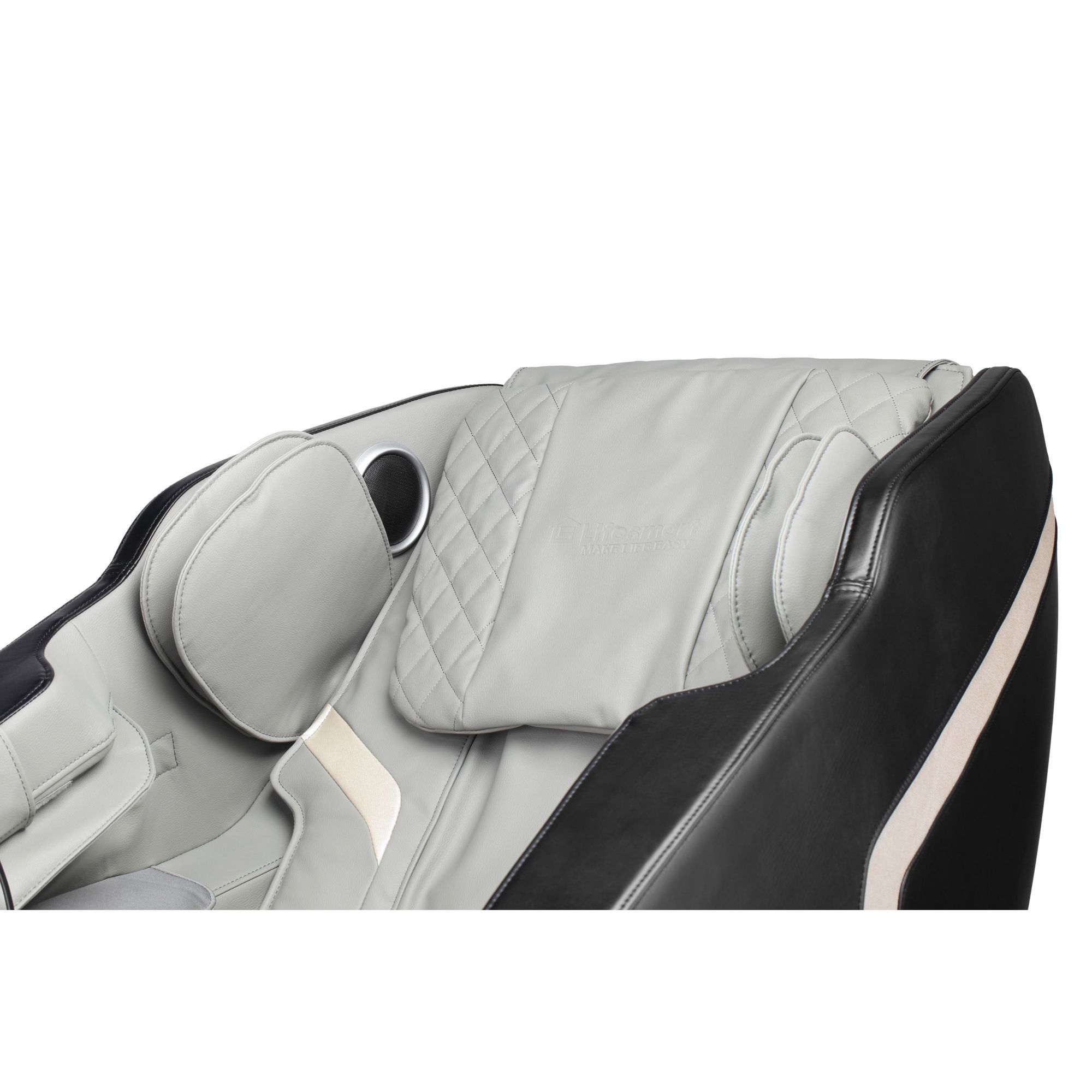 Enjoy multi-functional therapeutic massage in the comfort and privacy of your home with the Lifesmart Zero Gravity Massage Chair. This massage chair features an iTrack system for massage from neck down to the lumbar area, combining total relaxation with the right touch of pressure to deliver an optimum whole body massage, aiding in relieving back stress and improving your body's circulation. A total of 32 airbags offer a whole body massage featuring four shoulder, four arm, two hip, and a total of 22 calf and feet airbags. Back massage rollers combine shiatsu and kneading style massage to help relieve back stress and improve circulation. Massage balls rotate clockwise or counter-clockwise to ease tight muscle tension. Each foot sole provides a relaxing foot massage. The heating element provides soothing relief to the lumbar area. Personalize your massage therapy from your neck all the way down to your legs using six auto pre-programmed 15 minute massage modes, or select a more custom massage with the manual massage modes. Listen to favorite music or podcast through the built in Bluetooth speaker. This chair is stylishly designed with black exterior and gray faux leather upholstery.