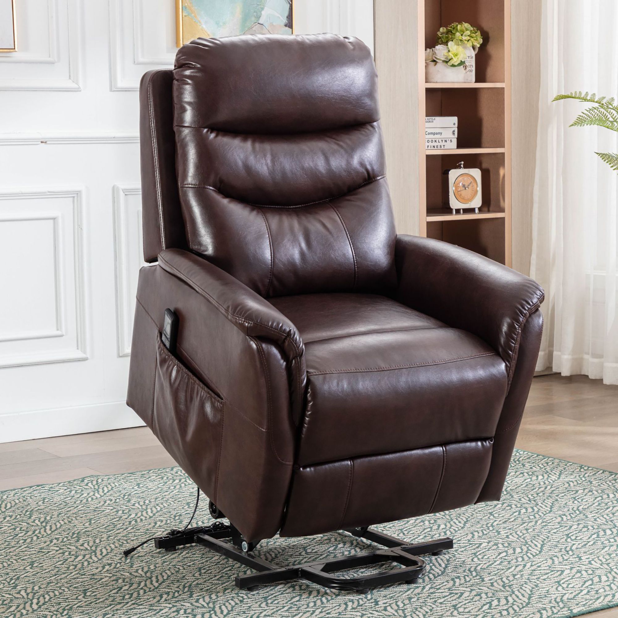 Lifesmart Deluxe Lift Chair Recliner with Power Lumbar and Footrest - Brown